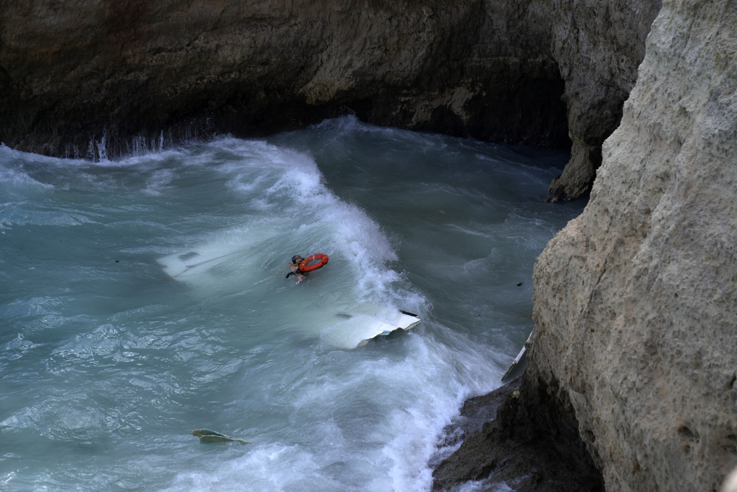 Στο μεταξύ, την τρίτη μέρα στη θάλασσα η συνέχεια έγινε δραματική. «Ακούσαμε έναν δυνατό ήχο, κουνηθήκαμε πολύ και άρχισαν να μπαίνουν νερά. Όλοι φώναζαν βοήθεια και κάποιοι τηλεφωνούσαν στην Αστυνομία. Όλοι προσπαθούσαμε να βγούμε έξω και πέσαμε στο νερό και μετά από ώρα με τράβηξαν με ένα σκοινί και σώθηκα», είπε ένας από τους επιβάτες. «Τα κύματα μας χτύπαγαν στα βράχια και πολλά άτομα τα έπαιρνε η θάλασσα. Είδα πολλά άτομα να πνίγονται», κατέθεσε ένας δεύτερος. Σύμφωνα με τις μαρτυρίες, στο σκάφος υπήρχαν μόλις 10-11 σωσίβια.