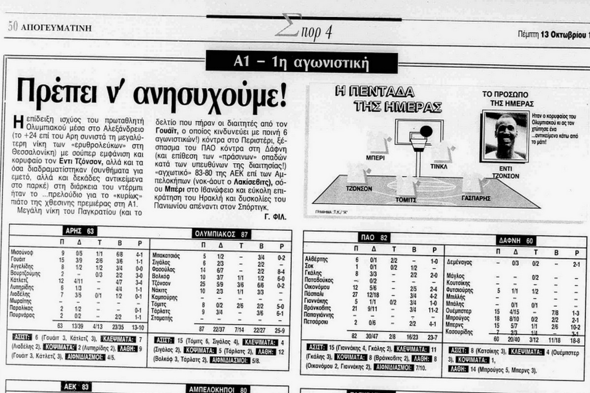 Ο Παύλος δεν φεύγει αλλά η ατμόσφαιρα βαραίνει. Την Τετάρτη 12/10 ξεκινάει το πρωτάθλημα και ο Παναθηναϊκός επιστρέφει στις νίκες, επικρατώντας της Δάφνης με 82-60. Ο Γκάλης αγωνίζεται 35:15 λεπτά, σημειώνει 8π (3/3δ, 2/2 βολές) κάνει 3 κλεψίματα και δίνει 2 ασίστ και ο Πολίτης μετά το ματς δηλώνει ικανοποιημένος που με πλέι-μέικερ τον μεγάλο άσο, η μπάλα πέρασε μέσα στο καλάθι και έτσι κυριάρχησε η ομάδα του.