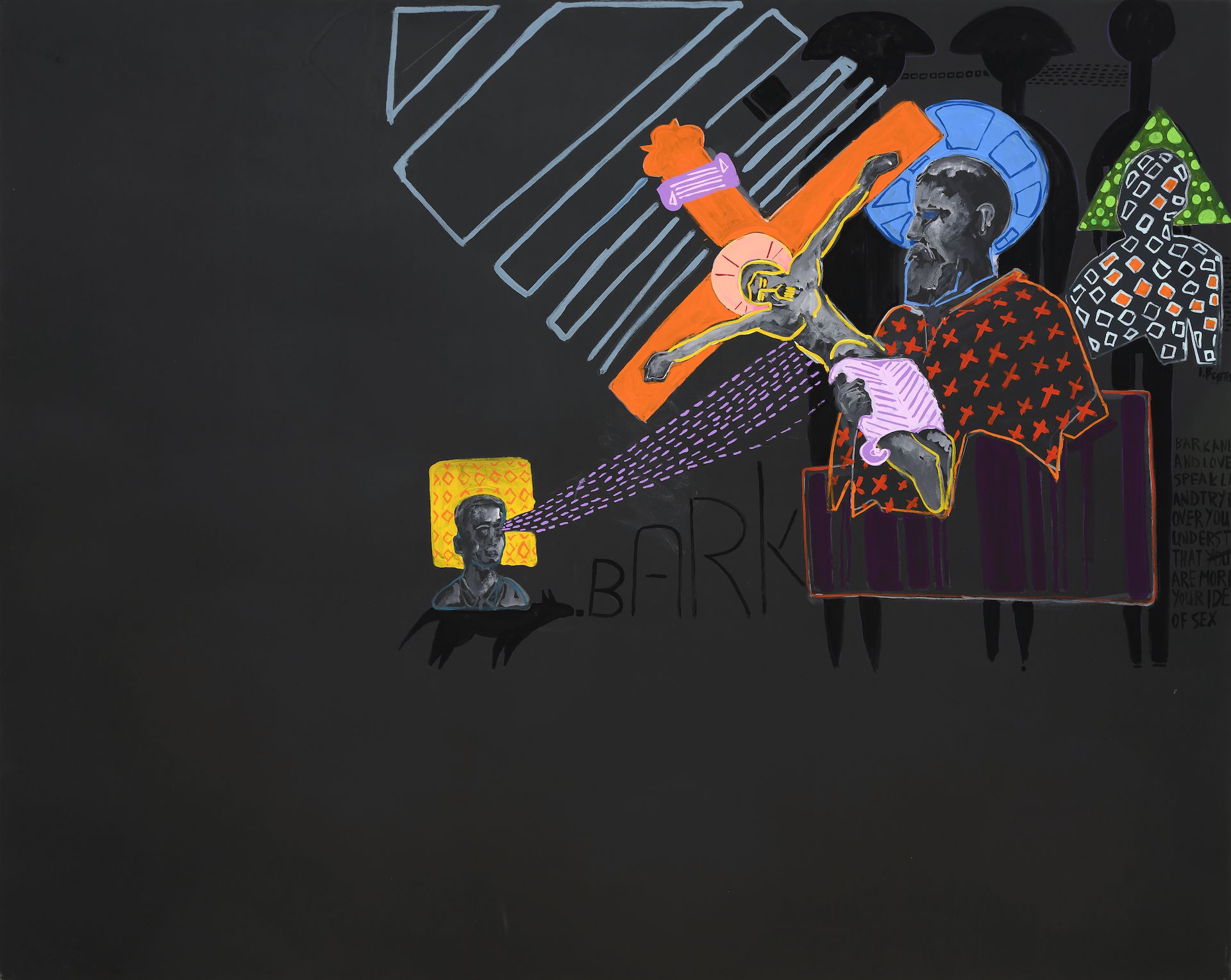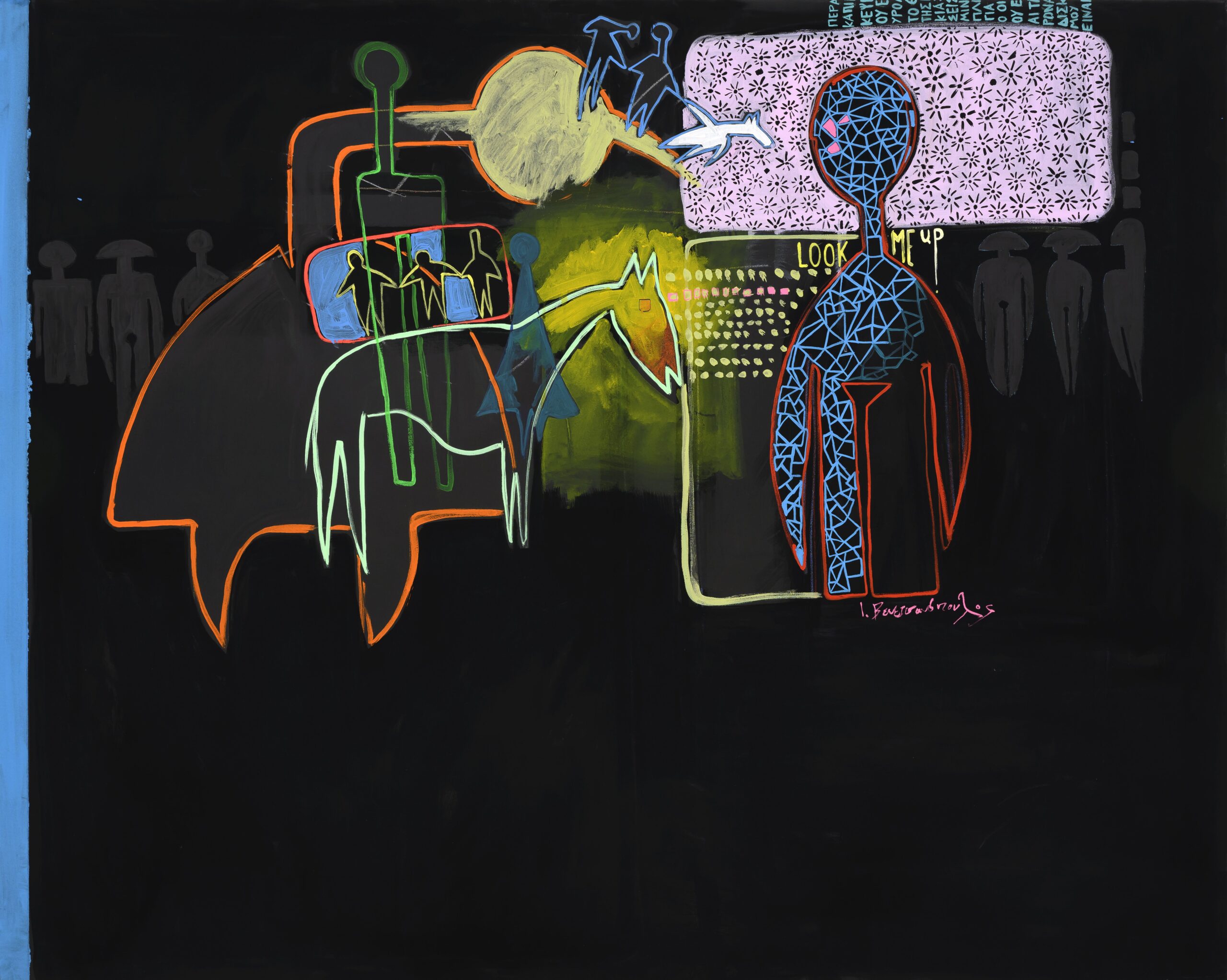 Η έκθεση περιλαμβάνει μια νέα συλλογή μεγάλων καμβάδων, επιλογές έντονων pop χρωμάτων μαζί με την “εμμονή” του καλλιτέχνη με το μαύρο φόντο, έργα από μελάνι σε χειροποίητο χαρτί με λεπτότητες και ποιητικές ευαισθησίες, καθώς και μια σειρά ζωγραφικών έργων πάνω σε μέταλλο, που αιωρούνται ανάμεσα στη ζωγραφική και τη γλυπτική.