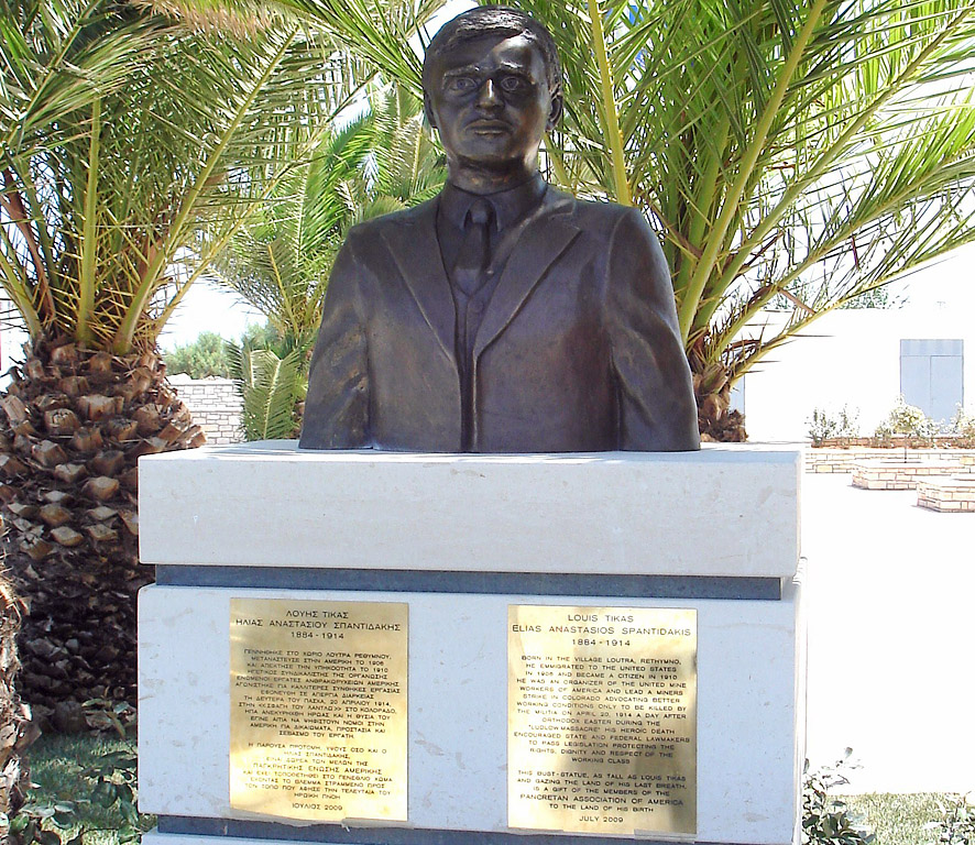 Πριν φύγει έβγαλε μια φωτογραφία φορώντας την παραδοσιακή κρητική στολή και την άφησε ως ενθύμιο στους συγγενείς του. Δεν επρόκειτο να ξανανταμωθούν (κάτι που κανείς τότε δεν γνώριζε). Στις ΗΠΑ μετέτρεψε το όνομά του στο αγγλοσαξονικό Luis Tikas, με το οποίο έμελλε να γραφεί στην ιστορία των συνδικαλιστικών αγώνων.