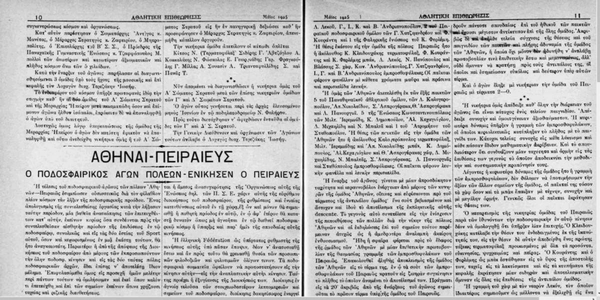 Πηγές: Αθλητική Επιθεώρησις (1925-1926), Ολυμπιακά Νέα. Φωτογραφίες από το αρχείο του Γιάννη Φιλέρη.