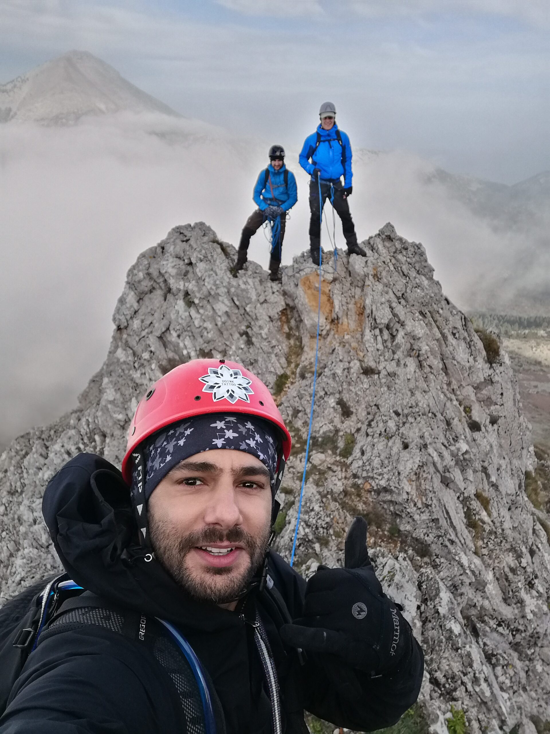 Αναβιώνοντας το δέος που αισθάνθηκε στα 12 του ανεβαίνοντας τον Όλυμπο, μιλάει για το αναπόδραστο της δικής του έλξης προς το βουνό. «Ήμασταν μια ομάδα, περισσότερο παρέα, άνδρες γυναίκες. Μαζί κι ο Συκάρης με τη σύζυγό του Πόπη. Κοντά τους μεγάλωνα τόσο ορειβατικά όσο και συναισθηματικά. Θυμάμαι είχαμε κάνει μια διαδρομή αρκετά δύσκολη τεχνικά, συνδυασμό πεζοπορίας, αναρρίχησης και ανάβασης. Παρόλο που ήμουν μικρός, η εμπιστοσύνη που μου έδειχναν με έκανε να πατάω γερά στα πόδια μου. Ένιωθα ένα τρομερό δέσιμο με τη φύση. Από τότε προτιμούσα να κάθομαι κάτω, γειωμένος, παρά σε καρέκλα. Αργότερα ήρθαν οι ορειβατικές κατασκηνώσεις, οικογενειακές διακοπές σε κάμπινγκ κι εκεί μετά τα 18 έλαβα εκπαίδευση αναρρίχησης και χειμερινού βουνού».