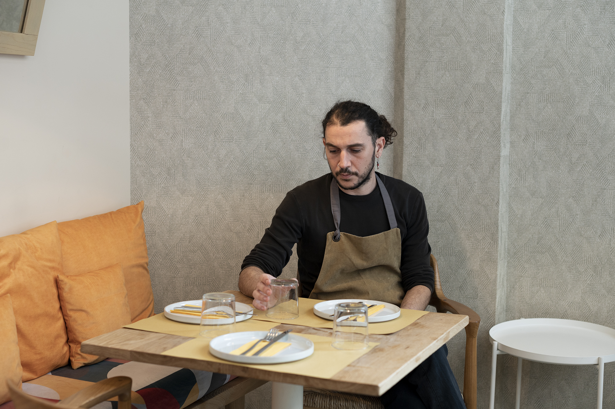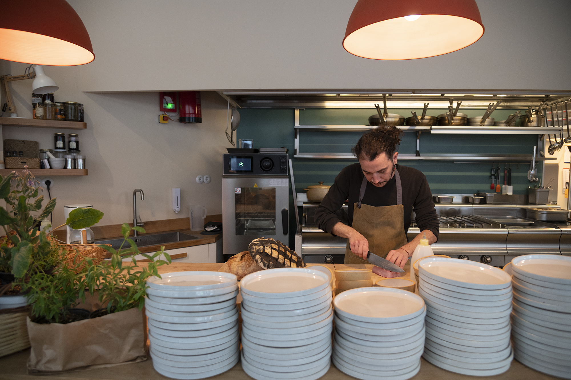 “Όταν μένεις και μαγειρεύεις στην Ανάφη, μαθαίνεις να δουλεύεις με τα υλικά που έχεις. Ανοίγει το μυαλό αναγκαστικά, σε βοηθούν και οι άνθρωποι σε αυτό” λέει. Στο κυκλαδίτικο νησί που περνούσε τα καλοκαίρια του, ο Στέφανος φτιάχνει το δικό του κρασί στο κτήμα Φλαμουρού, από τα αμπέλια που τα ξεκίνησε ο θείος του, και βρισκόταν στην κουζίνα της Μαργαρίτας. Εκεί, έμαθε να διαχειρίζεται το κατσίκι μόνος του, nose to tail όπως είναι ο όρος, και πλέον ξέρει ακριβώς τι να ζητήσει στον κρεοπώλη του. Σε ένα νησί, όπου όλοι έχουν τους μπαχτσέδες τους, τις κοτούλες για τα αυγά, και κάποια έχουν και κανένα κατσικάκι, ο Στέφανος έμαθε τι σημαίνει το farm to table.