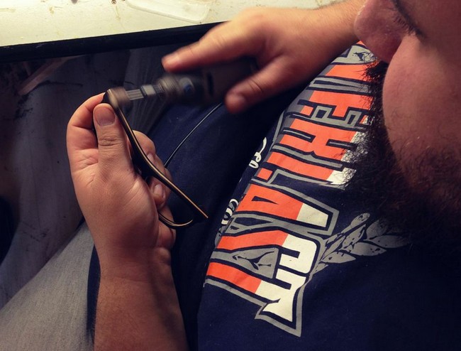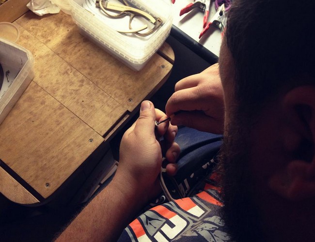 Μοναδικά υλικά τότε κάτι κούτσουρα, ένας dremel τροχός, λίγο γυαλόχαρτο, παλιά ελάσματα και φακοί από μεταχειρισμένα γυαλιά. Μετά μπήκε «στο παιχνίδι» το λέιζερ, τα καλούπια, η υψηλής ποιότητας εξωτική ξυλεία που διαλέγει «τάβλα τάβλα» ο Περικλής, η ποικιλία στα χρώματα, ο ακριβός φακός Hoya και η πολυεπίπεδη επεξεργασία. «Τον πρώτο καιρό, μού ήρθε να τον μαχαιρώσω. Ο Περικλής είναι τελειομανής. Είχε χάσει τον ύπνο του. Ξυπνούσε ξημερώματα και σκεφτόταν πώς θα βελτιώσει το design τους. Και τα έτριβε για να δει αν αντέχουν στα σημεία που είχαμε κάνει κούρμπες», παραδέχεται η Ελένη.