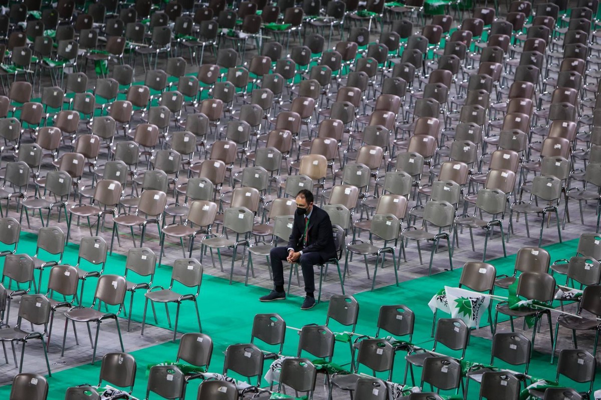 Σύνεδρος στο Γήπεδο Tae Kwon Do στο Φάληρο λίγο πριν αρχίσουν οι εργασίες του 3ου Συνεδρίου ΠΑΣΟΚ ΚΙΝΑΛ, πρώτου συνεδρίου χωρίς την Φώφη Γεννηματά (20.5.2022)
