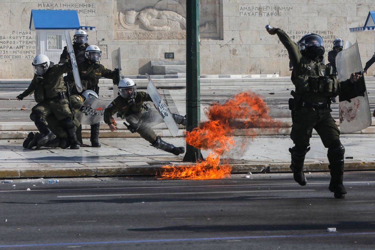 Διαδηλωτές συγκρούονται με ΜΑΤ έξω από τη Βουλή, κατά τη διάρκεια πορείας διαμαρτυρίας για την ακρίβεια και τους χαμηλούς μισθούς στην Αθήνα (9.11.2022)