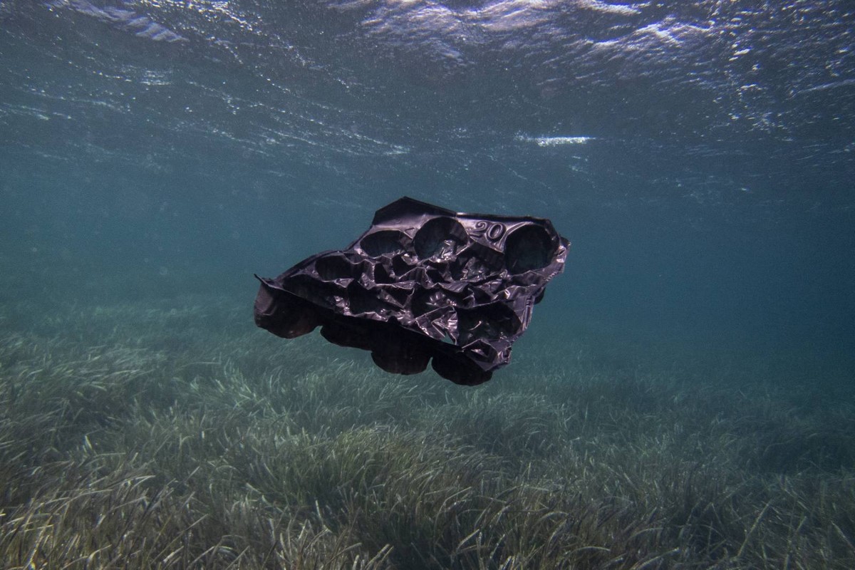 Πλαστικό απόρριμμα διακρίνεται στη θάλασσα κοντά στη περιοχή Πλατύ Λήμνου (8.8.2022)