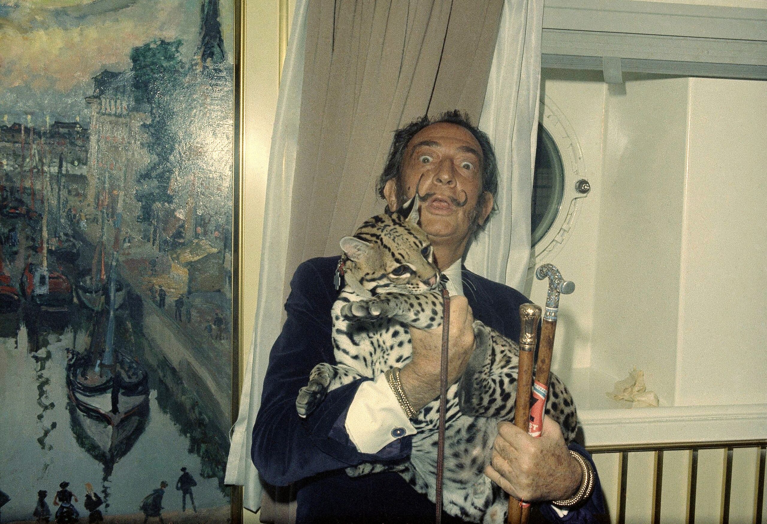 Ο Νταλί μαζί με το κατοικίδιό του, έναν οσελότο (είδος αγριόγατας), ονόματι Babu, τον Δεκέμβριο του 1968 στη Νέα Υόρκη. ⓒ 1968 Associated Press
