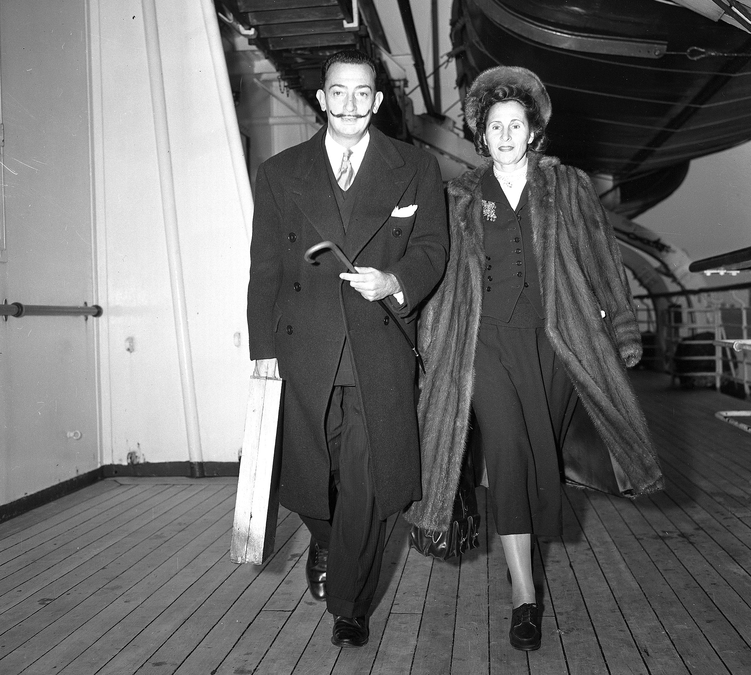 Ο Νταλί και η Γκαλά στο υπερωκεάνιο SS America, κατά την άφιξή τους στη Νέα Υόρκη τον Δεκέμβριο του 1949. ⓒ 1949 Rooney/Associated Press
