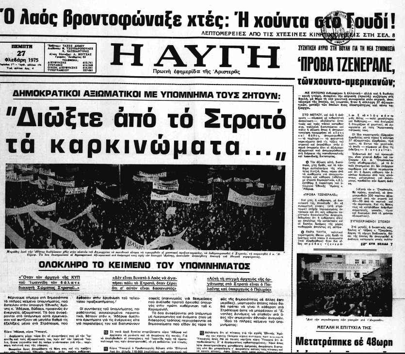 Βεβαιούται κατηγορηματικώς ότι πρόκειται περί ανοήτων κινήσεων, ελαχίστων αμετανοήτων, συνδεόμενων με τους πρωτεργάτας της δικτατορίας.