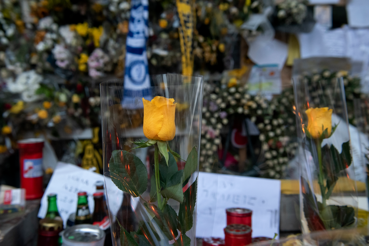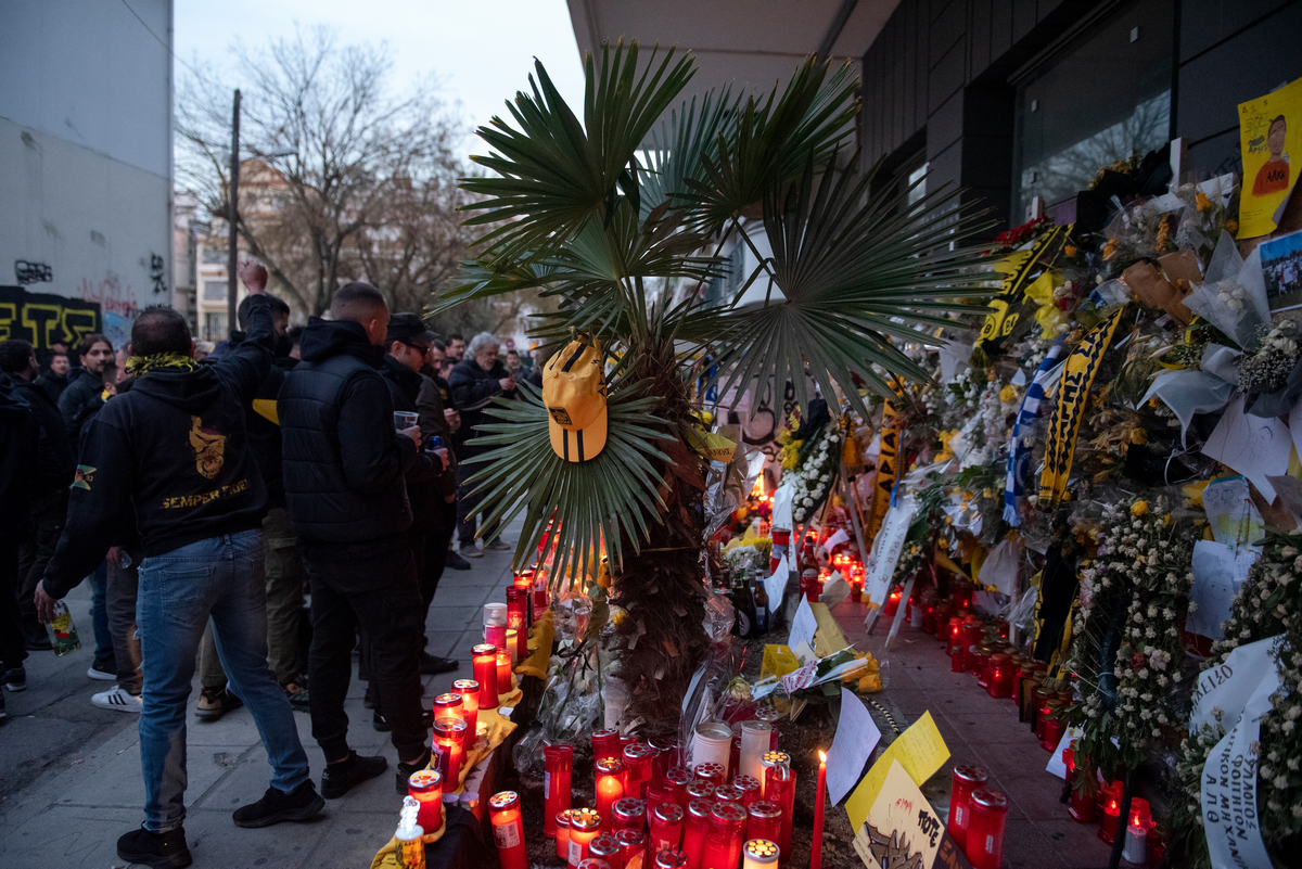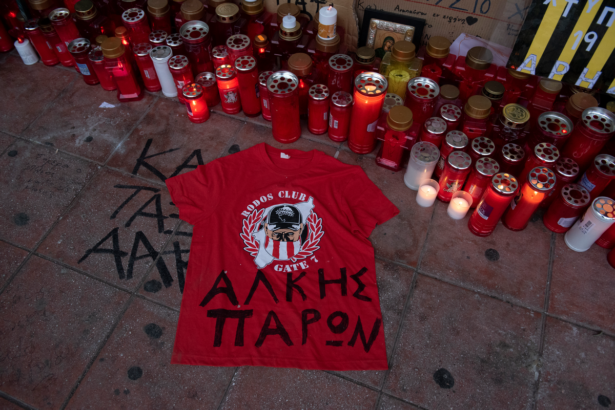 Κρατούσαν σφιχτά στα χέρια τους κίτρινα κασκόλ και λουλούδια και τα άφηναν στο σημείο που δολοφονήθηκε πριν από τρεις εβδομάδες ο 19χρονος Άλκης Καμπανός, από χούλιγκαν του ΠΑΟΚ.