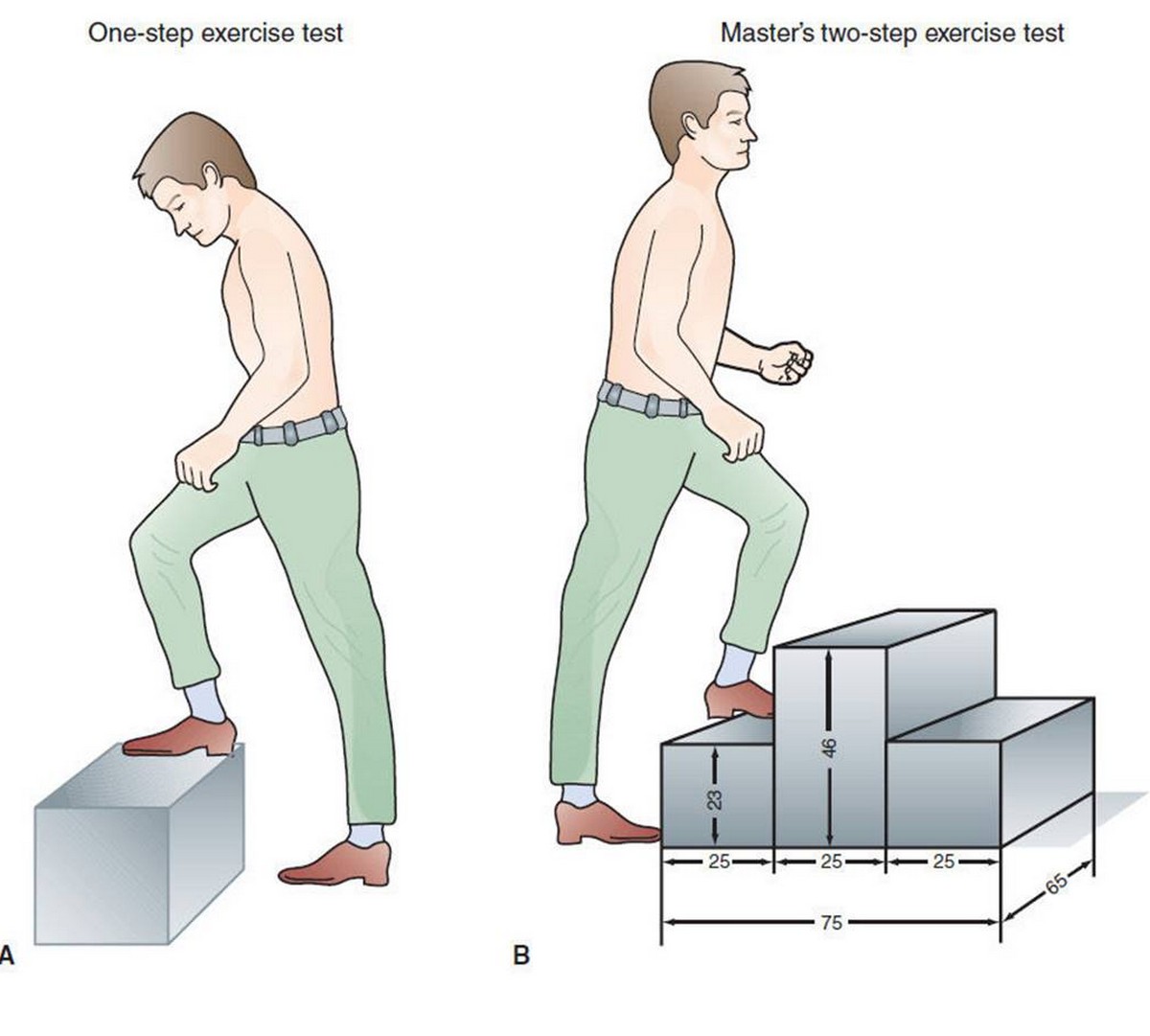 Βοηθούσε και το γεγονός ότι η μέθοδος που χρησιμοποιούνταν τότε είχε αποδειχθεί ανεπαρκής τρόπος αξιολόγησης της αναπνευστικής και της κυκλοφοριακής λειτουργίας. Το Master’s Two Step αφορούσε ηλεκτροκαρδιογράφημα έδειχνε την κατάσταση της καρδιάς τους, ενώ ανέβαιναν και κατέβαιναν μια μικρή πλατφόρμα, για 90 δευτερόλεπτα.