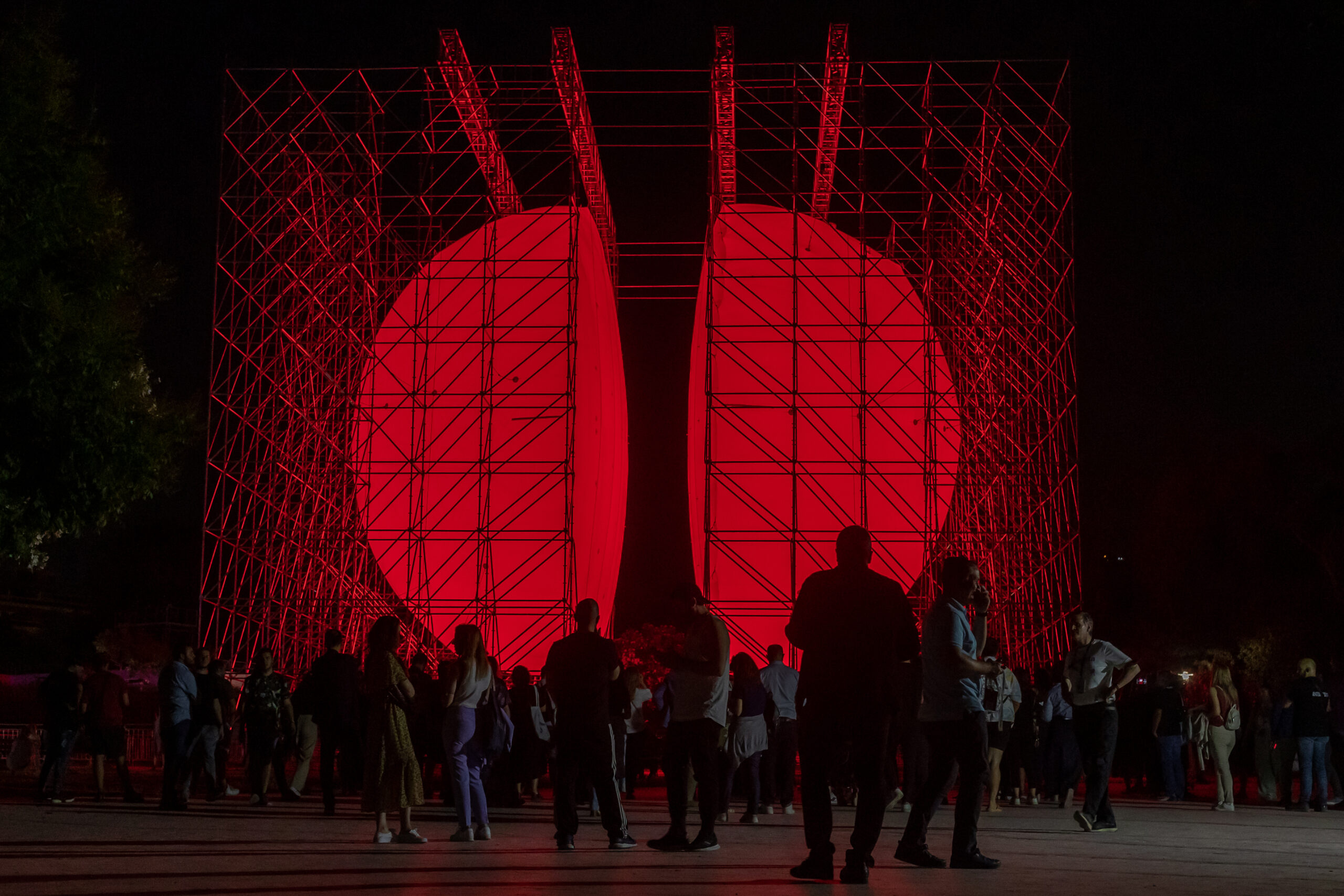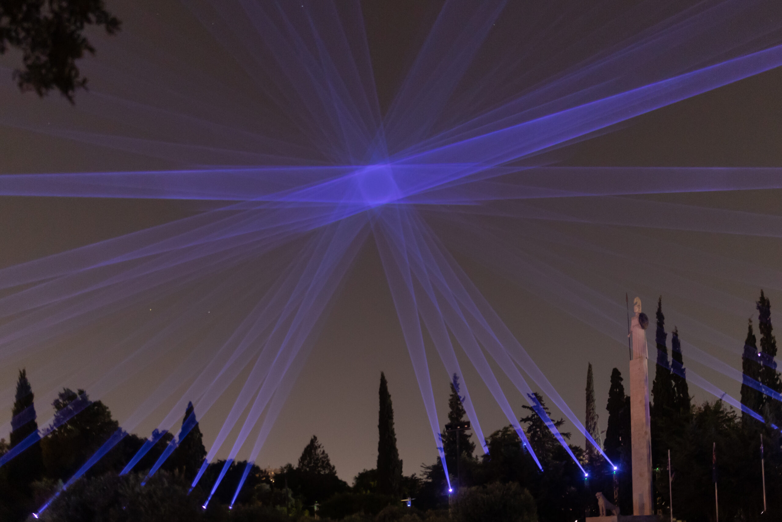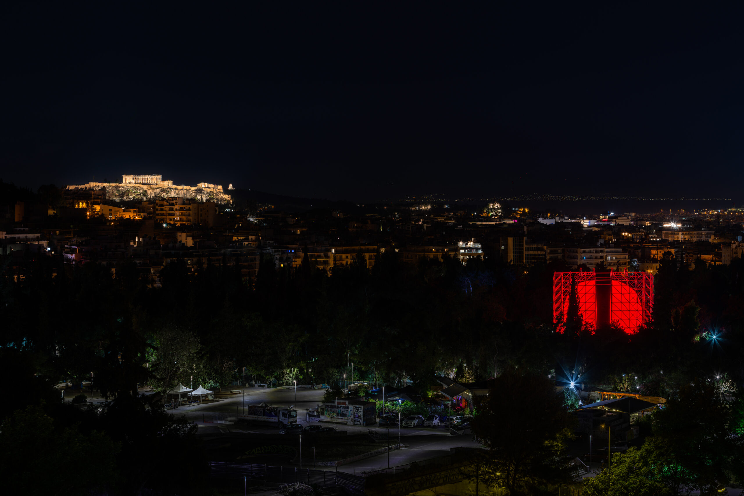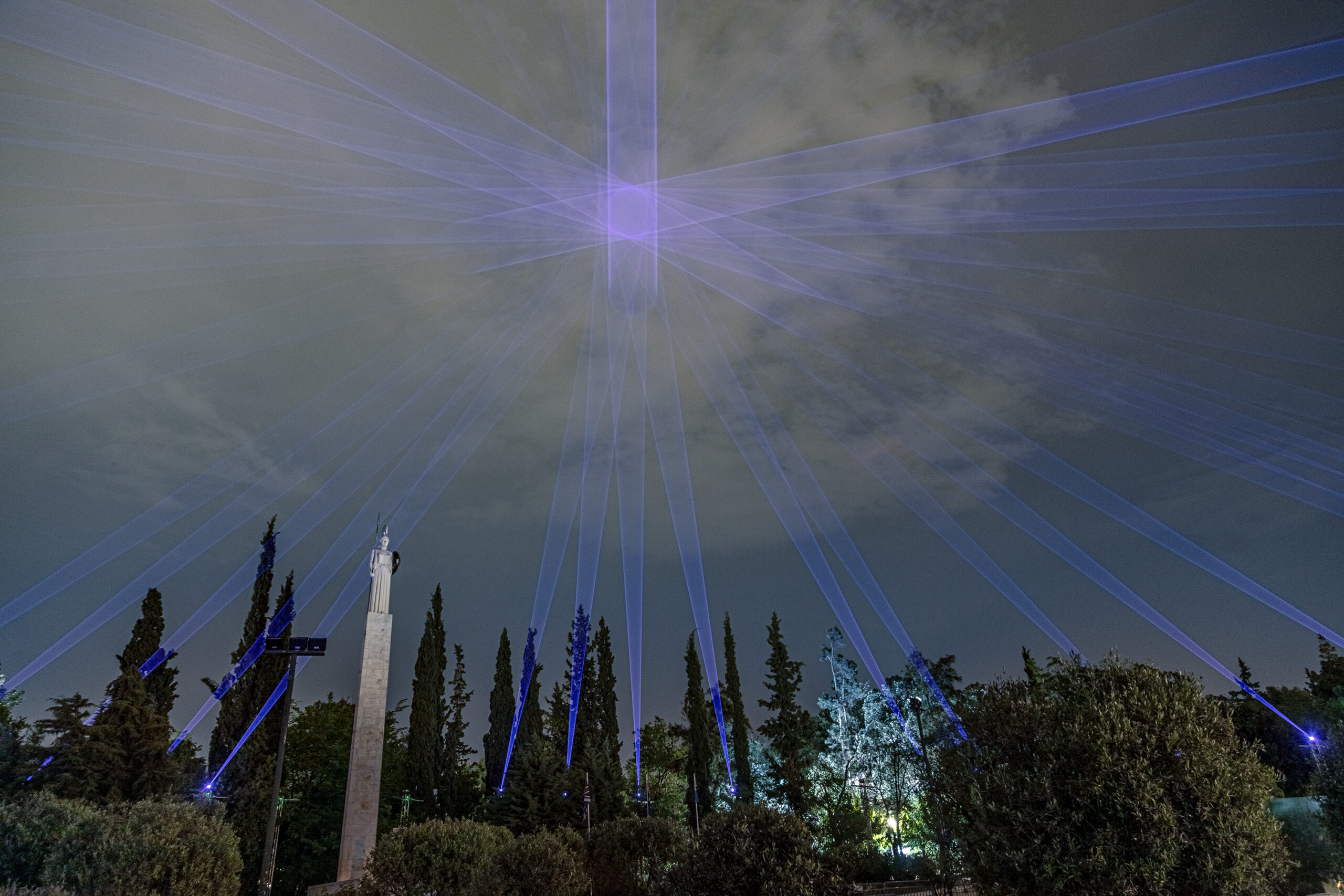 Ένας επιβλητικός πορφυρός πλανήτης ύψους 20 μέτρων στο πλάτωμα Οικονομίδη, κι ένα ρομαντικό τεχνητό φεγγάρι από ακτίνες laser που υψώνεται στα 70 μέτρα πάνω από το Πεδίον του Άρεως στον χώρο του αγάλματος της θεάς Αθηνάς.