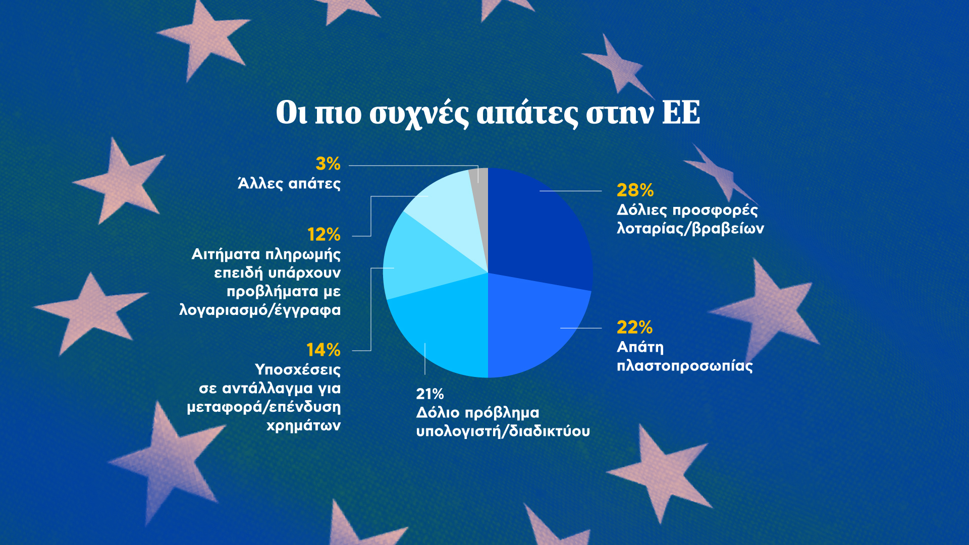 Στην Ευρωπαϊκή Ένωση τα στοιχεία της έκθεσης του 2020 δείχνουν πως οι πιο συχνές απάτες ήταν οι εξής: