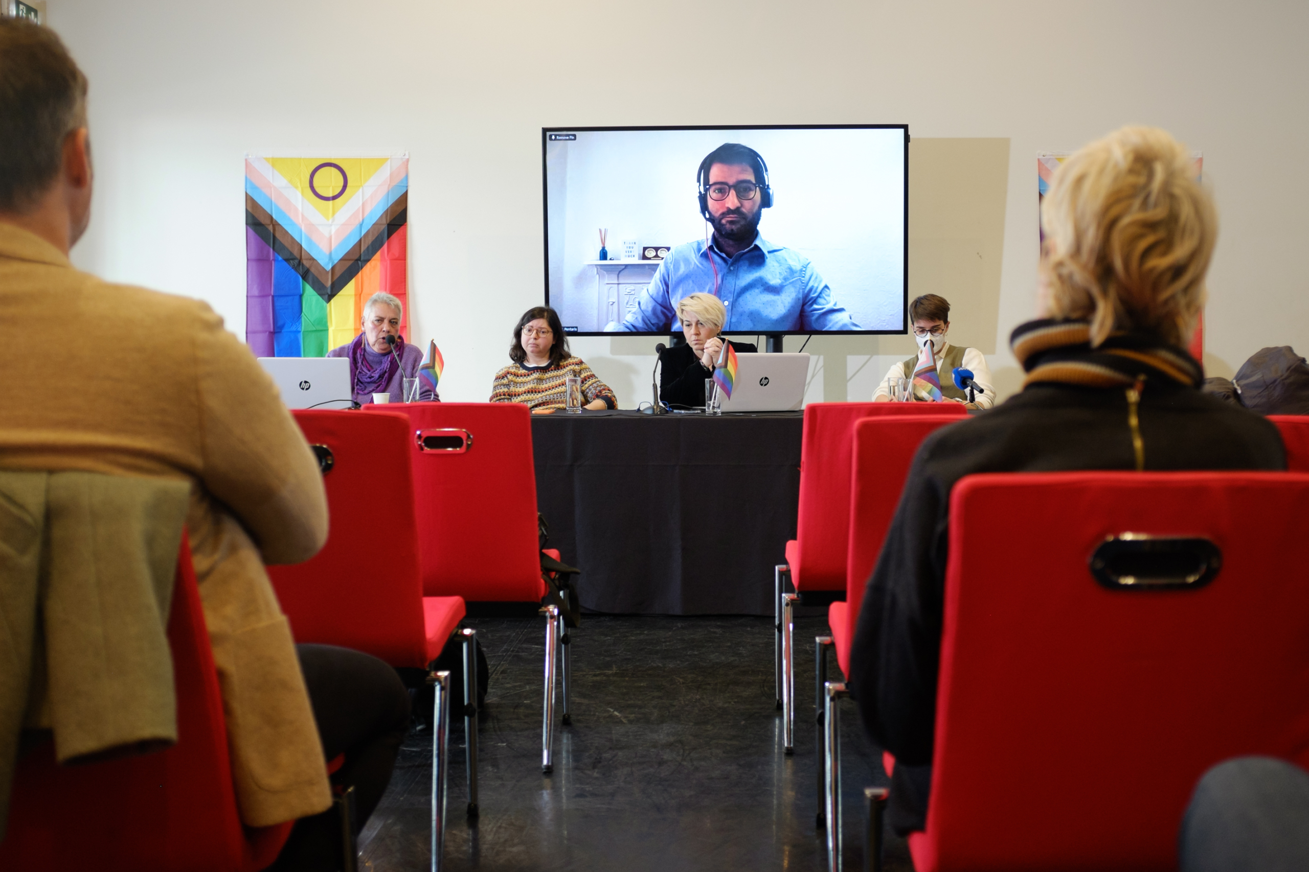 Από την πλευρά της, η πρόεδρος των οικογενειών Ουράνιο Τόξο, Στέλλα Μπελιά, έθεσε συνοπτικά το θέμα που αντιμετωπίζουν τα ομόφυλα ζευγάρια στην Ελλάδα μέχρι σήμερα: «Αντιμετωπίζουμε πολλές διακρίσεις όσο περιμένουμε αυτή τη νομοθεσία. Είμαστε σαν τον σκύλο που κυνηγάει την ουρά του. Θα σας το πω απλά. Σε ένα ετερόφυλο ζευγάρι, όταν ο μπαμπάς λείπει για δουλειές, όλα είναι καλά και η μαμά κάνει όσα χρειάζεται να κάνει. Σε ένα ομόφυλο ζευγάρι, όταν ο μπαμπάς λείπει για δουλειές, τίποτα δεν είναι καλά. Ο άλλος ο μπαμπάς δεν μπορεί ούτε να πάει το παιδί στο νοσοκομείο, γιατί εκεί δεν θα τον αναγνωρίσουν ως μπαμπά του. Αυτό μας έχει κάνει να προσπαθούμε όλα αυτά τα χρόνια να κάνουμε τις παρεμβάσεις μας».