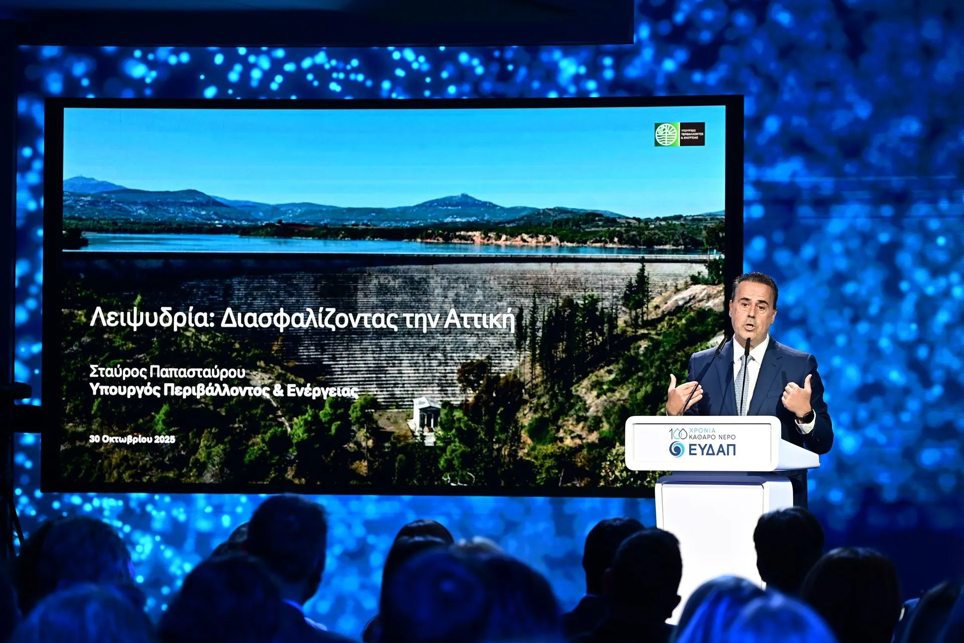 Στις 30 Οκτωβρίου 2025, στην εκδήλωση για τον εορτασμό των 100 χρόνων λειτουργίας της ΕΥΔΑΠ, ο υπουργός Περιβάλλοντος και Ενέργειας, Σταύρος Παπασταύρου και ο CEO της ΕΥΔΑΠ, Χάρης Σαχίνης, παρουσία του Πρωθυπουργού, Κυριάκου Μητσοτάκη, ανακοίνωσαν την εκκίνηση έργων ύψους 2,5 δισ. ευρώ για τη διαχείριση του νερού, έτσι ώστε η χώρα μας να μη βρεθεί αντιμέτωπη με τον κίνδυνο της λειψυδρίας.