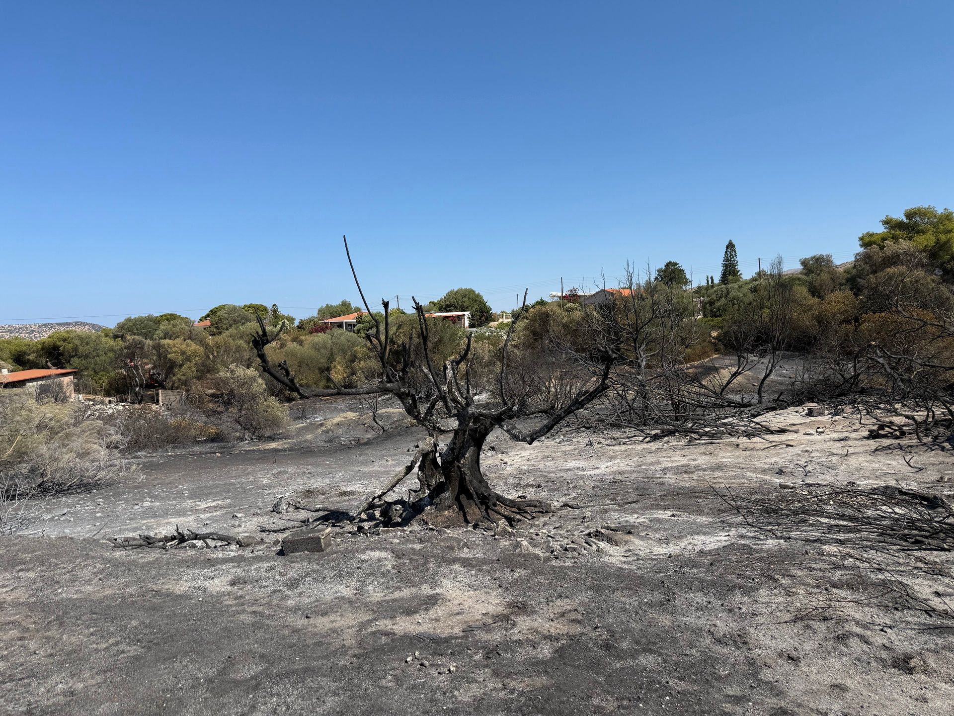 Μια γειτόνισσα λίγο πιο κάτω εξιστορεί ότι προκειμένου να μην φοβάται, καθαρίζει κάθε χρονο και τα απέναντι από τα δικά της οικόπεδα, για τα οποία κανένας δεν νοιάζεται. “Νομίζω ότι αυτό μας έσωσε” λέει, δείχνοντας μας την στάχτη που έχει απλωθεί ακριβώς απέναντι από το σπίτι της.