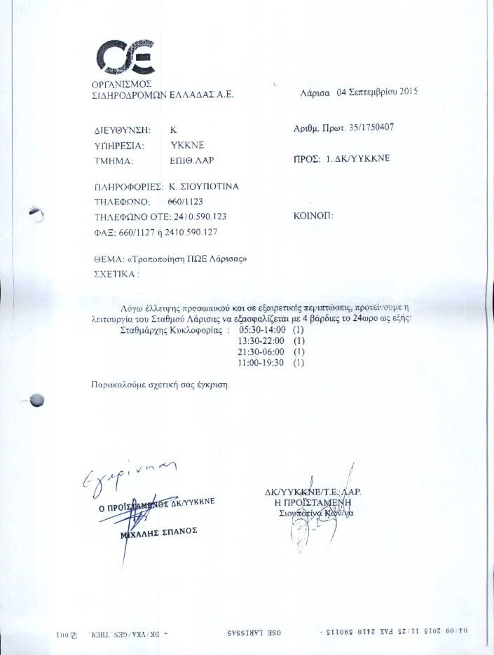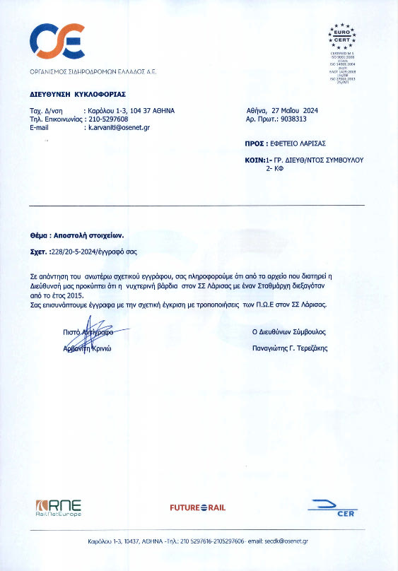Από τα παραπάνω είναι ασαφές αν, οι σταθμάρχες που βρίσκονταν, όχι μόνο στη Λάρισα, αλλά και στην υπόλοιπη Ελλάδα, είχαν εκπαιδευτεί. Το βέβαιο είναι ότι δεν είχαν παρακολουθήσει 33 ώρες του Β’ κύκλου.