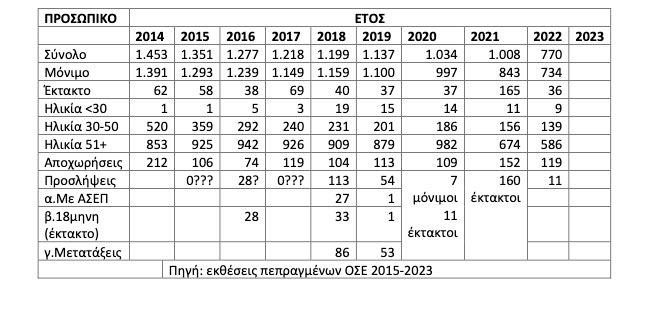 Το προσωπικό του οργανισμού δεν πλησίασε ποτέ σε αυτά τα νούμερα. Όπως φαίνεται και στον παρακάτω πίνακα, την τελευταία δεκαετία, το προσωπικό του οργανισμού ήταν διαχρονικά κάτω από το 50% του απαιτούμενου.
