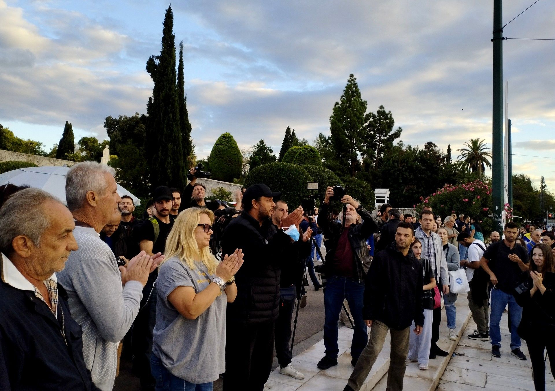 Μπροστά από τη Βουλή, ανάμεσα στα συνθήματα και τα τύμπανα, ξεχώρισε η συμμαχική παρουσία του απεργού πείνας Πάνου Ρούτσι και της συζύγου του, Μιρέλας Ρούτσι, που στάθηκαν πλάι στον κόσμο, υψώνοντας τις γροθιές τους και φωνάζοντας συνθήματα αλληλεγγύης. Η παρουσία τους δεν ήταν απλώς συμβολική: ήταν μια ζωντανή υπενθύμιση της κρατικής εκδικητικότητας, της δικαστικής αυθαιρεσίας και της ανθρωποφαγίας ενός συστήματος που εξοντώνει όποιον και όποια δεν υπακούει.