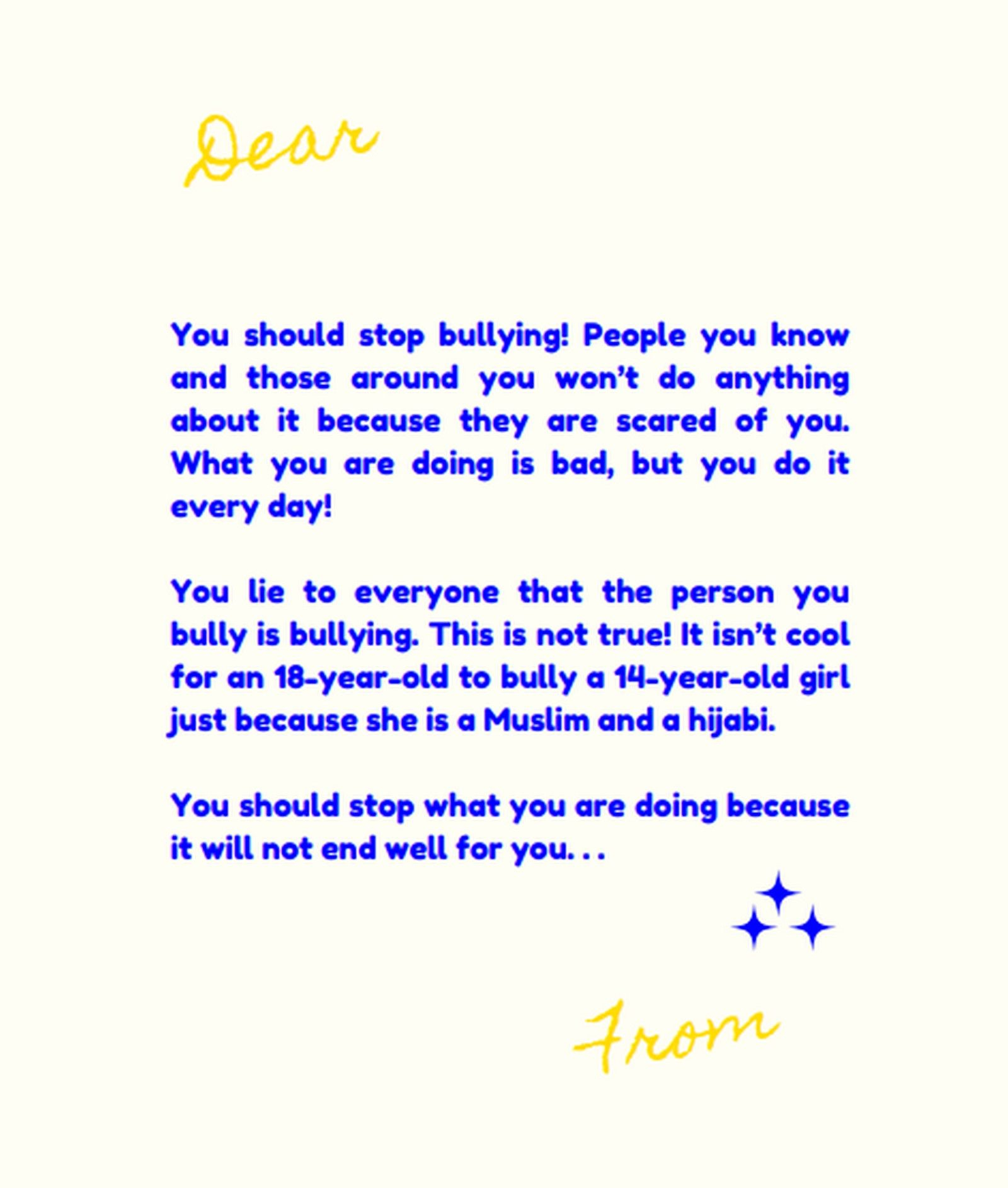 «Το πρώτο πράγμα που λένε όλα τα παιδιά πως χρειάζεται να γίνει στα σχολεία, είναι ουσιαστική εκπαίδευση κατά του εκφοβισμού. Προγράμματα που θα βοηθήσουν τους μαθητές να κατανοήσουν πλήρως τις επιπτώσεις του, αντί του να εμφανίζεται μια στο τόσο κάποιος εξωτερικός να τους μιλάει μόνο θεωρητικά για το φαινόμενο.