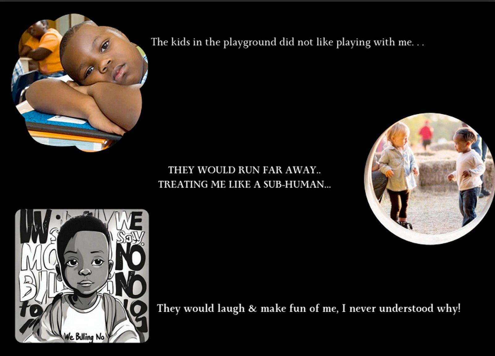 Για πρώτη φορά, ο λόγος δίνεται στα θύματα φυλετικού εκφοβισμού και για την ακρίβεια, σε θύματα αφροφοβίας, τα οποία μιλούν για όσα νιώθουν όταν κακοποιούνται, αποκλείονται και χλευάζονται από συνομηλίκους, αλλά και από τους δασκάλους και τους καθηγητές τους, ενήλικες που υποτίθεται πως θα έπρεπε να τα προστατεύσουν.
