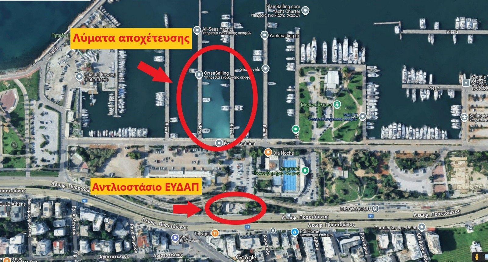 Η μια είναι η Μαρίνα Αλίμου, όπου όταν το αντλιοστάσιο της ΕΥΔΑΠ, δίπλα στη Μαρίνα υπερ-φορτώνεται από λύματα, ό,τι ξεχειλίζει από το δίκτυο οδηγείται απευθείας μέσα στη Μαρίνα Αλίμου. Το αποτέλεσμα της (διαρκούς) ρύπανσης της θάλασσας, με το βυθό να αποκτά άλλο χρώμα, λόγω των βοθρολυμάτων.
