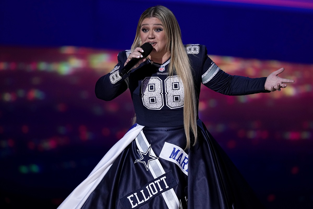 Η Κέλι Κλάρκσον φοράει μια φάνελα-σύνθεση από φανέλες των Dallas Cowboys στη διάρκεια των φετινών βραβείων του NFL. AP Photo/David J. Phillip