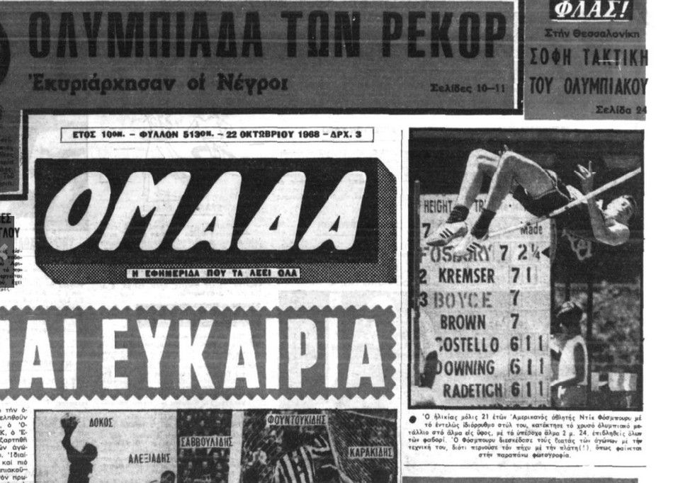 Στο Μεξικό όμως, ο παγκόσμιος αθλητισμός υποδέχθηκε και έναν άλλο επαναστάτη. Όχι τόσο (και για τη δική του) υψωμένη γροθιά στο βάθρο των νικητών, όσο για τον τρόπο με τον οποίο βρισκόταν πάνω από τον πήχη του άλματος σε ύψος. Ο Ντικ Φόσμπερι ήταν ο πρώτος που αποφάσισε, δοκίμασε και εν τέλει πέτυχε να περνάει με την πλάτη, αλλάζοντας μια για πάντα το ίδιο το αγώνισμα. Το όνομα του έγινε συνώνυμο του νέου παλμού, αφού τέσσερα χρόνια μετά (στο Μόναχο) οι 28 από τους 40 άλτες του ύψους πηδούσαν με Fosbury flop.
