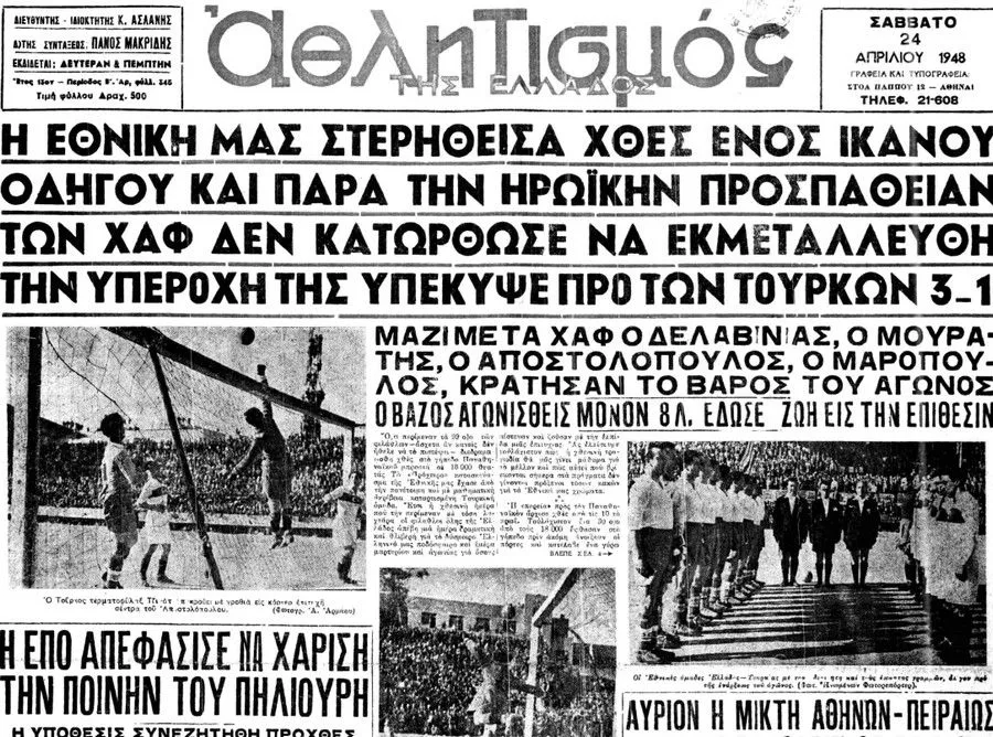 “Με τις ευχές όλων των φιλάθλων μας αύριον η Εθνική μας αποδύεται στον δυσκολότερον αγώνα της προ την πανίσχυρον τουρκικήν”.