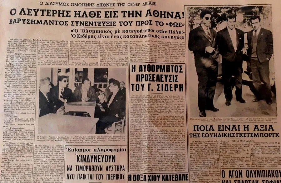 Τον Οκτώβριο του 1963, ο Λευτέρης Αντωνιάδης κάνει ένα ταξίδι μέχρι την ελληνική πρωτεύουσα. Ο αείμνηστος δημοσιογράφος (χρόνια αργότερα αρχισυντάκτης) της εφημερίδας ΦΩΣ των ΣΠΟΡ, Άρης Μελισσινός, τον ανακαλύπτει και του παίρνει μια αποκαλυπτική συνέντευξη.