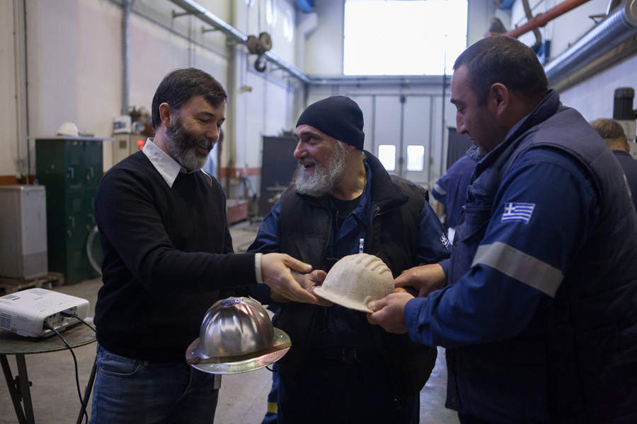 Η έκθεση του διεθνούς φήμης Κολομβιανού εικαστικού Juan Sandoval αφορά τη δημιουργία ενός αφιερωματικού πορτρέτου του εργατικού δυναμικού της πόλης, που θα εκτεθεί στον εμβληματικό χώρο του πρώην εργοστασίου ΙΡΙΣ. Το έργο περιλαμβάνει ενεργούς ή συνταξιούχους εργάτες διαφορετικών εργοστασίων· για καθέναν από αυτούς θα δημιουργηθεί ένα χειροποίητο κεραμικό κράνος. Μετά το πέρας της έκθεσης, τα κράνη θα μοιραστούν στους εργάτες που συμμετείχαν, ως προσωπική ανάμνηση αυτού του τιτάνιου έργου και ως τμήματα αυτού του μνημείου διασπαρμένα μέσα στην κοινότητα.