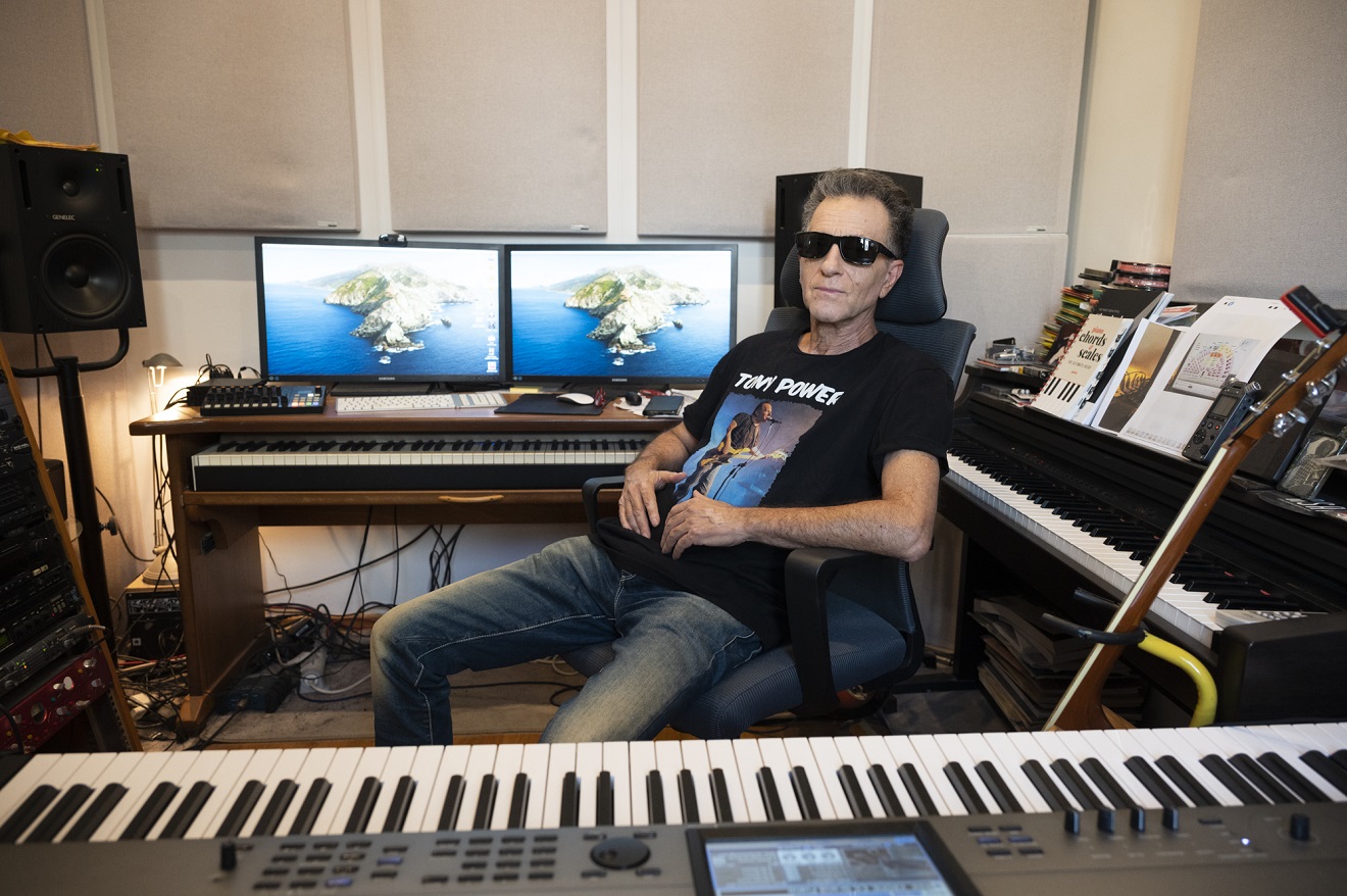 Αλλά εγώ είμαι δημιουργός. Βλέπεις τι γίνεται γύρω μου (σ.σ. μου δείχνει τους υπολογιστές και τα όργανά του). Εγώ είμαι studio rat που λένε.