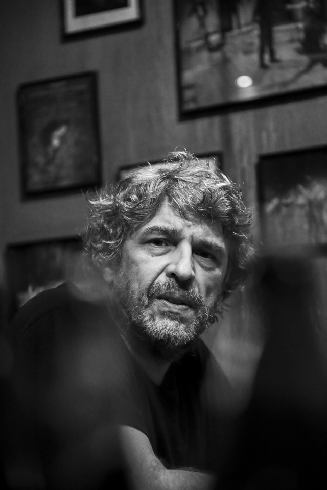 Που μπαίνουμε εκεί στην πρόβα και καθόμαστε έτσι ήσυχοι, ευγενικοί, μοντέρνοι (σ.σ. έχει μια δόση ειρωνείας η φωνή του) και μετά δουλεύουμε ως καλοί επαγγελματίες.