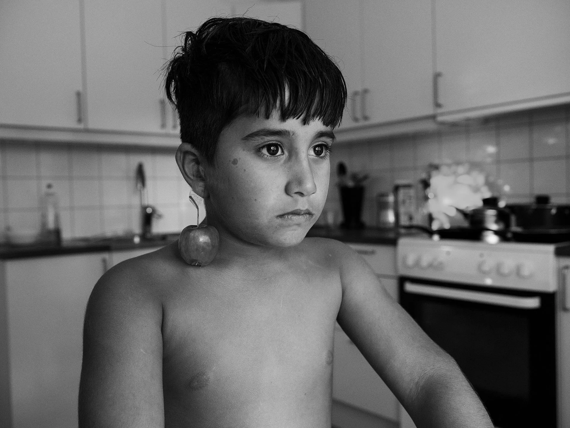 Τελικα η Σουηδία τους έδωσε άσυλο και πήγαν εκεί. Όταν τους επισκέφθηκα μετά από ένα χρόνο στο Σάλεμ, λίγο έξω από την Στοκχόλμη, με φιλοξένησαν στο πρώτο τους σπίτι και θυμάμαι τα παιδιά να είναι πάρα πολύ χαρούμενα που με βλέπανε. Μου έδειχναν το σπίτι και μετά βγήκαμε έξω όπου όλα τα δέντρα ήταν γεμάτα κόκκινα μήλα. Οπότε μαζέψαμε μήλα και εκεί που παίζαμε προέκυψε αυτή η εικόνα.