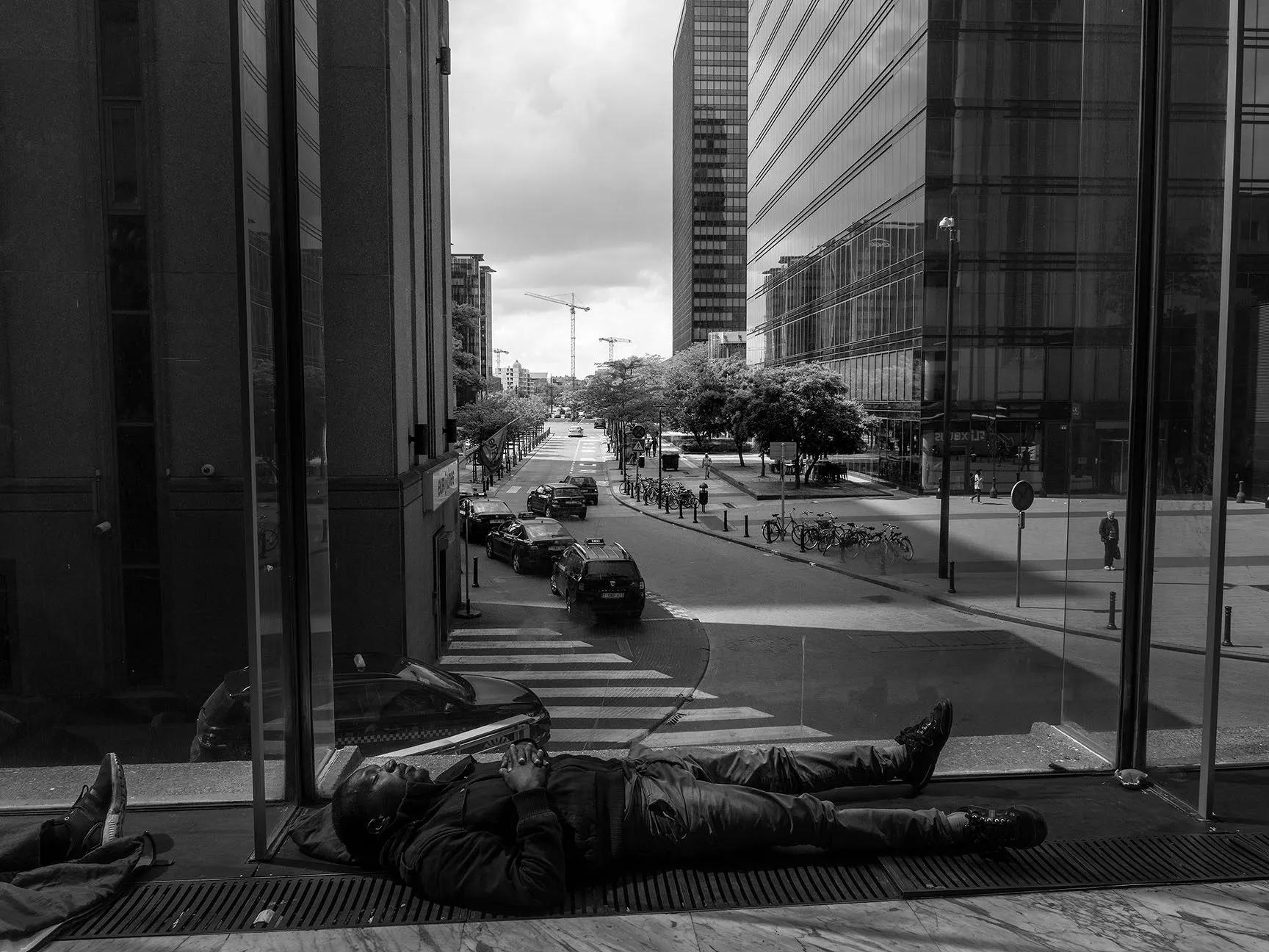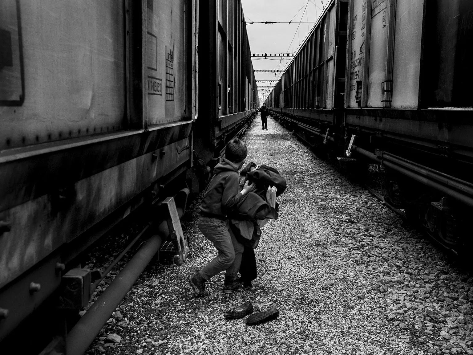 Μετανάστης στο σιδηροδρομικό σταθμό στις Βρυξέλλες Enri Canaj, Magnum Photos