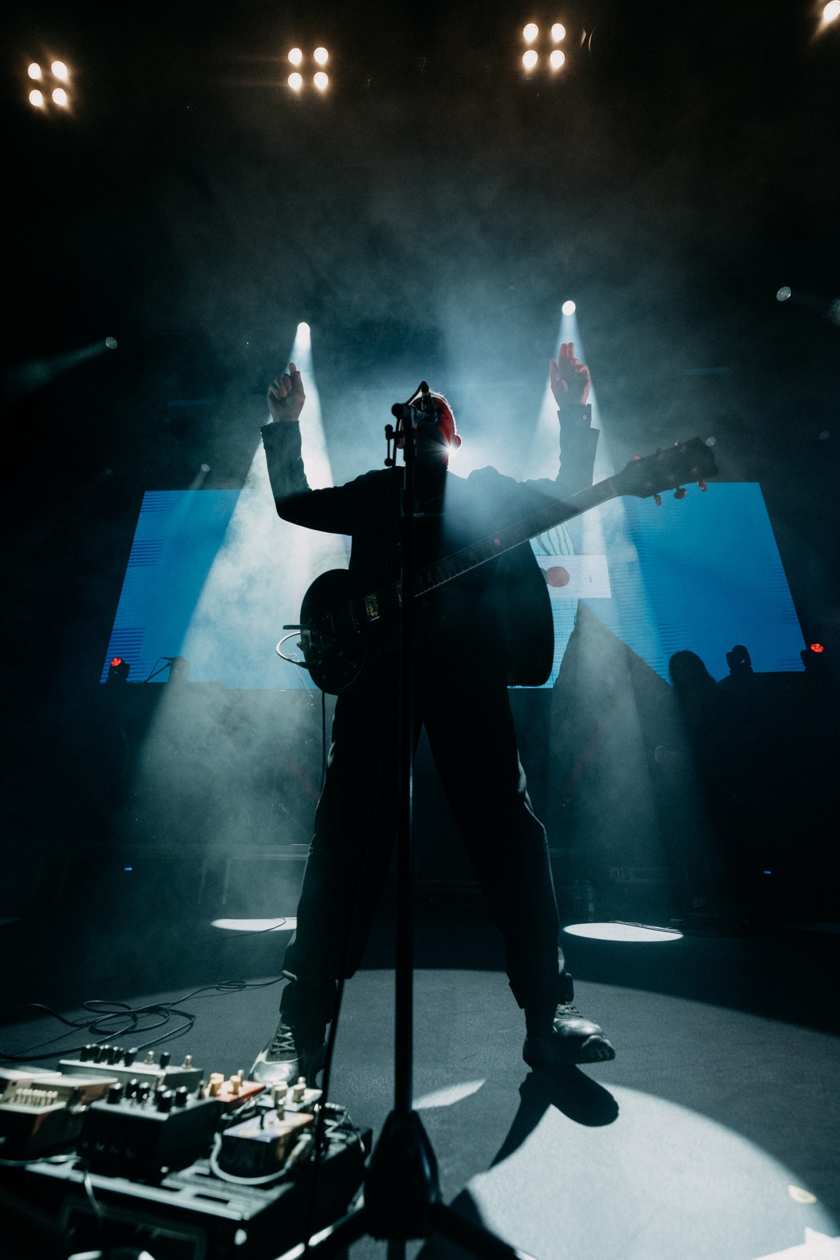 Κι έπειτα, βρίσκω το θάρρος και τον ρωτάω τι συμβολίζει το σήμα που σχηματίζεται στο εξώφυλλο του δίσκου και το οποίο είδαμε να επανέρχεται συχνά στα visuals της συναυλίας του. Το είχα σχεδιάσει πρόχειρα στις σημειώσεις μου. Γυρνάει στο πλάι την σελίδα που είχα μπροστά μου και με ρωτάει τι βλέπω. Αναρωτιέμαι. Μέχρι που μου απαντά: «Είναι τα αρχικά του ονόματός μου. Π και Π. Κι εγώ την πρώτη φορά που το είδα δεν κατάλαβα τι ήταν». Το βρίσκω πολύ έξυπνο. If you see it, you can’t unsee it.