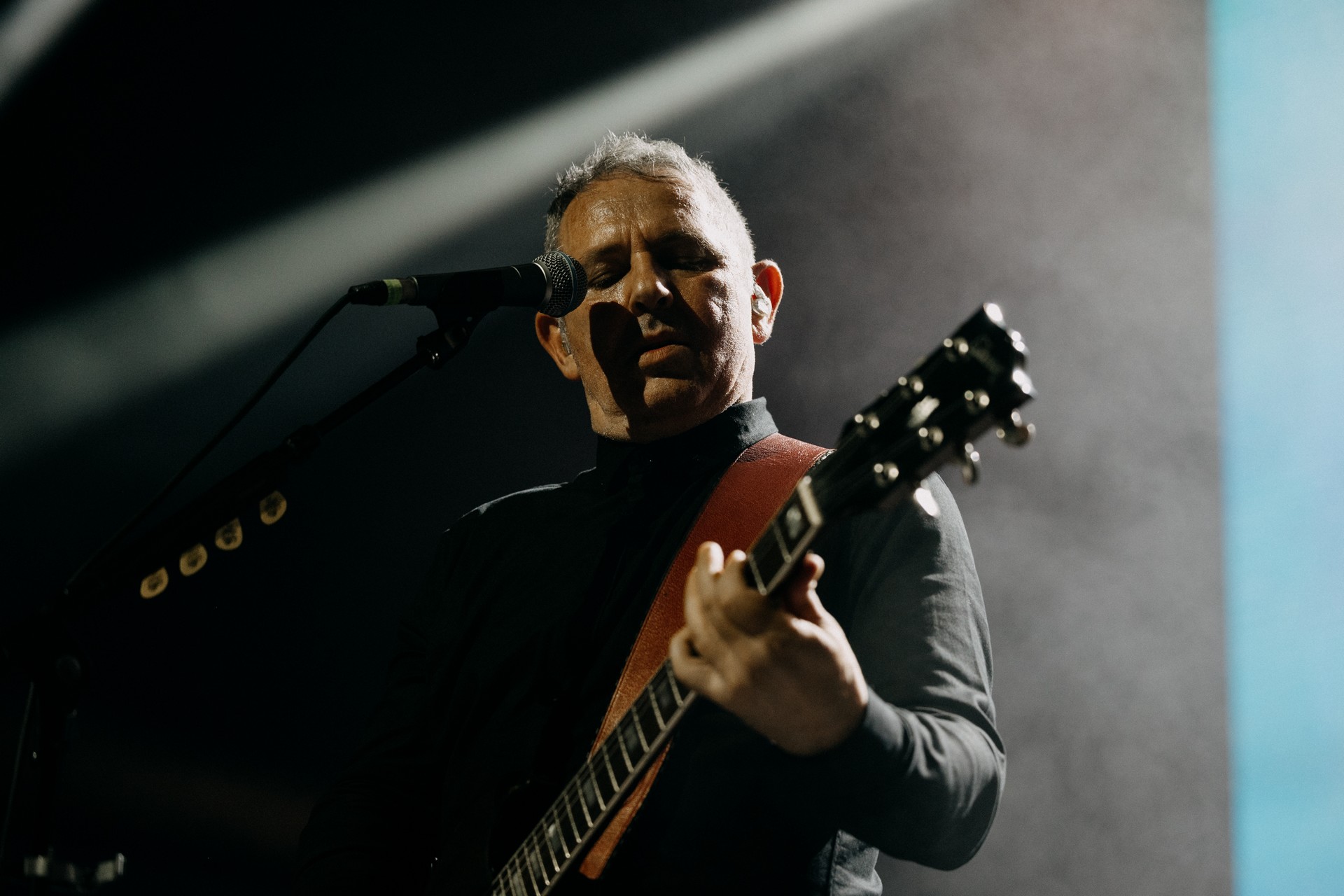 Τα μάτια του είναι καταγάλανα. Πιο γαλάζια απ’ όσο θυμόμουν, απολαμβάνοντάς τον στη σκηνή σε κάθε ευκαιρία – σχεδόν τη μισή μου ζωή μέχρι τώρα. Σκέφτομαι ότι μοιάζουν με τις θάλασσες, τα κύματα και τους ουρανούς που υμνεί συχνά στα τραγούδια του, σαν να ζωγραφίζονται οι στίχοι στο βλέμμα του.