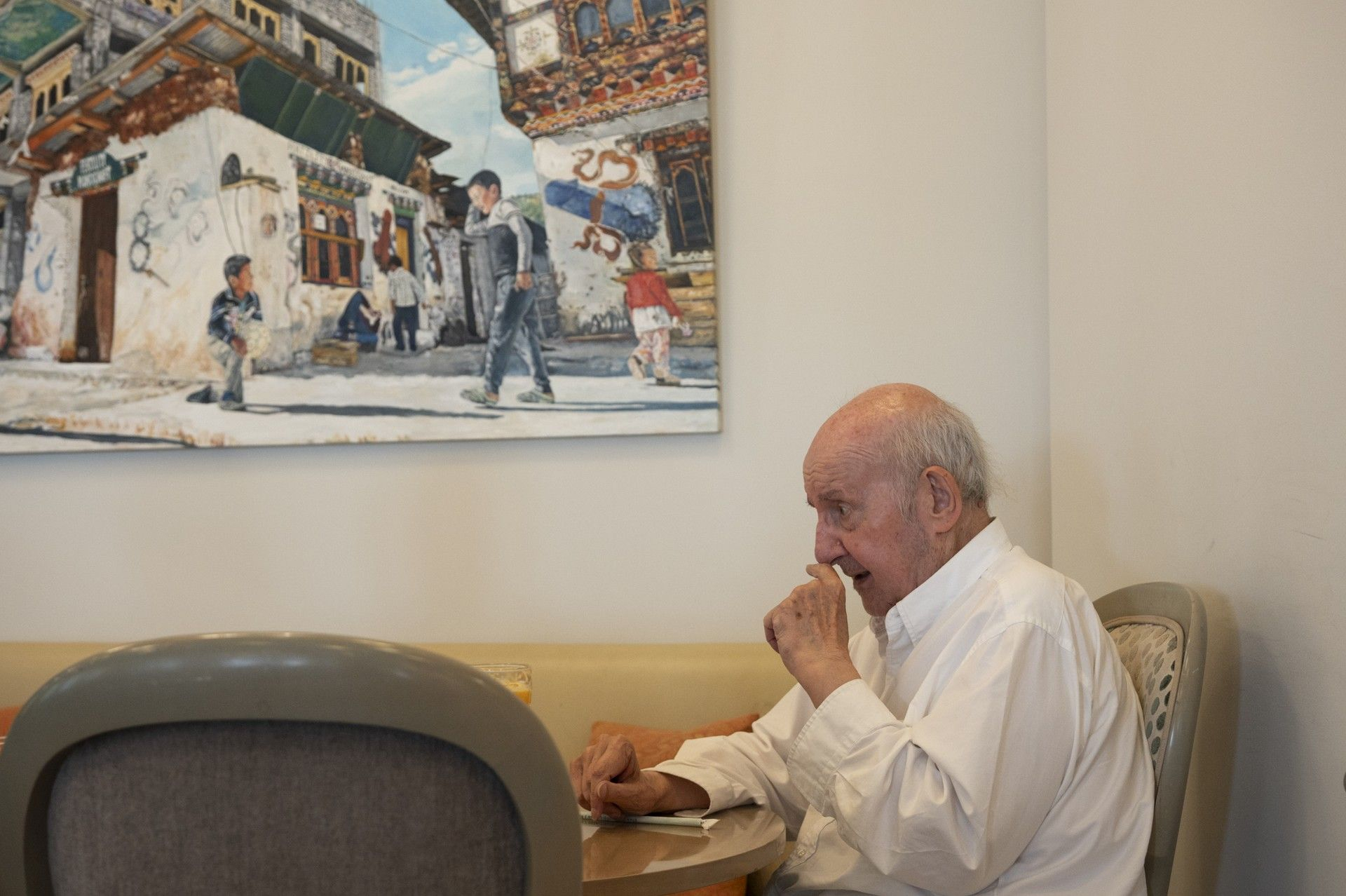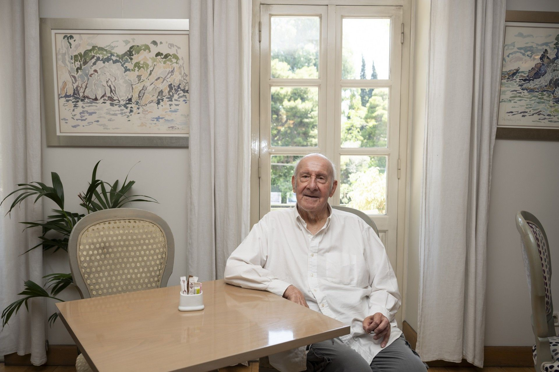 Κρατώντας -τι άλλο;- βιβλία φτάνει και στη συνάντηση μας, καταλήγοντας ένα αφόρητα ζεστό μεσημέρι στην εξώσφαιρα του Κολωνακίου μετά από ακόμη ένα πέρασμα από τους εκδοτικούς οίκους της ευρύτερης περιοχής. Έχει επιλέξει ο ίδιος τον τόπο της συνάντησης, του είναι γνώριμος εδώ και δεκαετίες, δεν κρύβει όμως την έκπληξή του όταν διαπιστώνει ότι εντελώς τυχαία έχω επιλέξει να τον περιμένω στο τραπέζι όπου έχει πάρει πάρα πολλές, όπως μου λέει, συνεντεύξεις και ο ίδιος. Κάθεται λοιπόν με άνεση κι ας είναι αυτή τη φορά ο ρόλος του αλλιώτικος.