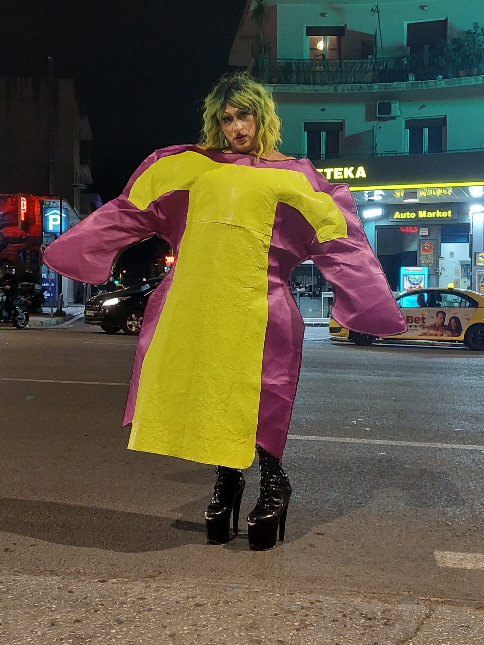 Ένα queer άτομο, μια drag queen, στην Ελλάδα βρίσκονται αντιμέτωπα με έναν άγνωστο, τυχαίο κίνδυνο.
