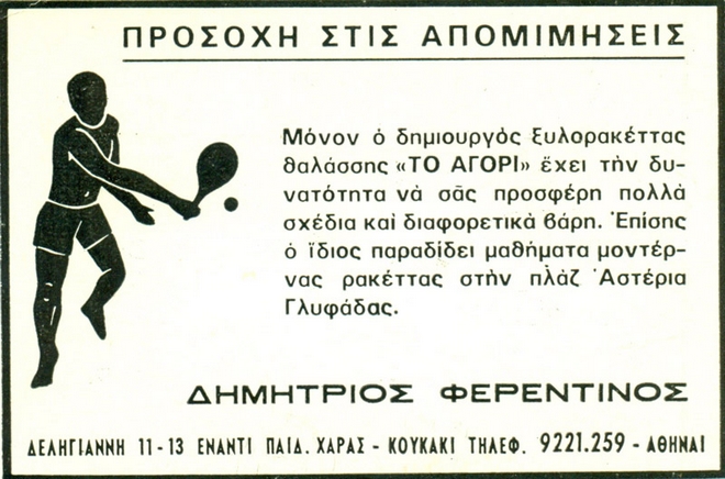 Το 1958, ένας 20χρονος νέος, επιπλοποιός στο επάγγελμα, φέρνει τη ρακέτα από την Αίγυπτο στην Ελλάδα. Δεν θέλει πολύ για να εθιστεί στο σπορ και να κάνει το πάθος του επάγγελμα, για να φτάσει σήμερα, 56 χρόνια από τότε, η ρακέτα να είναι συνώνυμο του ελληνικού καλοκαιριού και όχι μόνο.