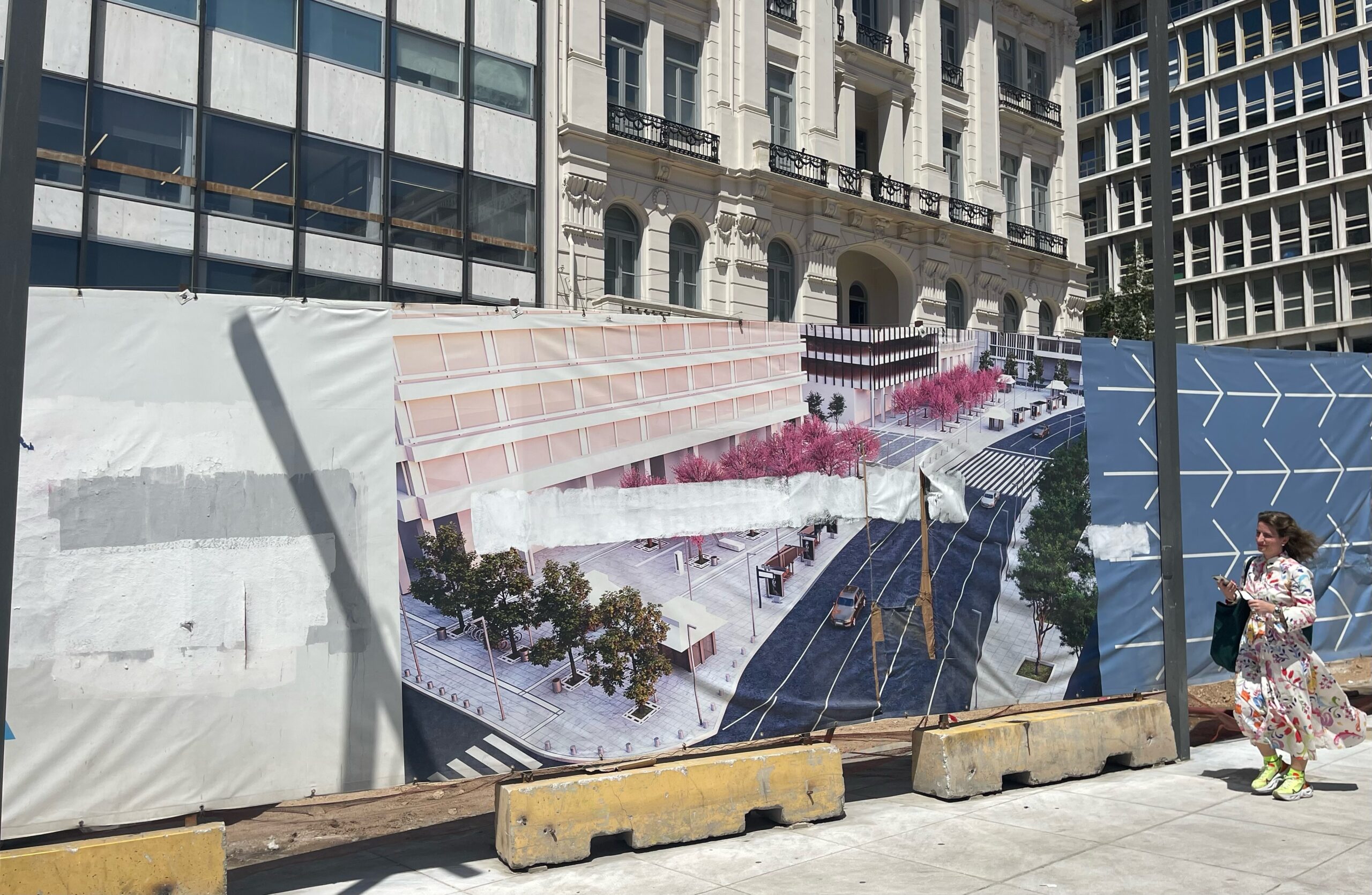 Η εικόνα αν κάποιος περαστικός κοιτάξει μέσα από τις τρύπες που έχουν δημιουργηθεί, προδίδει πως υπάρχει ακόμη δουλειά να γίνει μέχρι το έργο να ολοκληρωθεί, καθώς αυτό που είναι ορατό είναι μια περιοχή στρωμένη με χώμα και τσιμέντο. Δεν υπάρχουν ακόμη δέντρα φυτεμένα ούτε κάτι από τα υπόλοιπα που απεικονίζονται στις μακέτες που παρουσιάστηκαν το περασμένο καλοκαίρι.