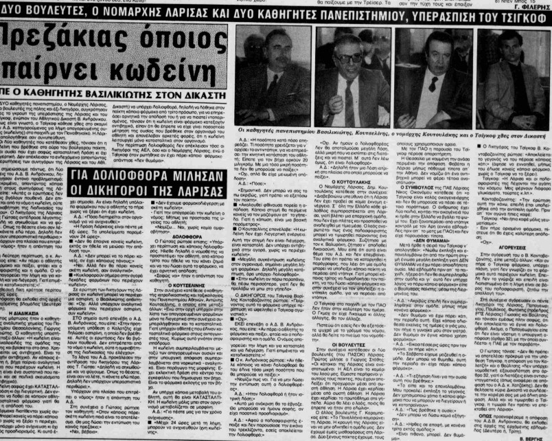 Ο μακαρίτης Κώστας Καίσαρης, έγραφε στο καυστικό ρεπορτάζ της εφημερίδας: “ΠΗΡΕ ΠΙΣΩ τους ΤΕΣΣΕΡΙΣ βαθμούς η Λάρισα. Η κυβέρνηση ΥΠΕΚΥΨΕ στις αντιδράσεις των οπαδών της θεσσαλικής ομάδας και ο Σήφης Βαλυράκης ΤΡΟΠΟΠΟΙΗΣΕ χθες τους κανονισμούς για το ντόπινγκ κοντρόλ. Η απόφαση αυτή του Βαλυράκη δείχνει ξεκάθαρα ότι στον τόμπας δεν υπάρχει ουσιαστικά ούτε υφυπουργός αθλητισμού, ούτε κράτος. Όταν πριν από τρεις μέρες, ο ίδιος ο Βαλυράκης, δήλωνε ότι δεν πρόκειται να κάνει καμιά παρέμβαση στην Αθλητική Δικαιοσύνη.