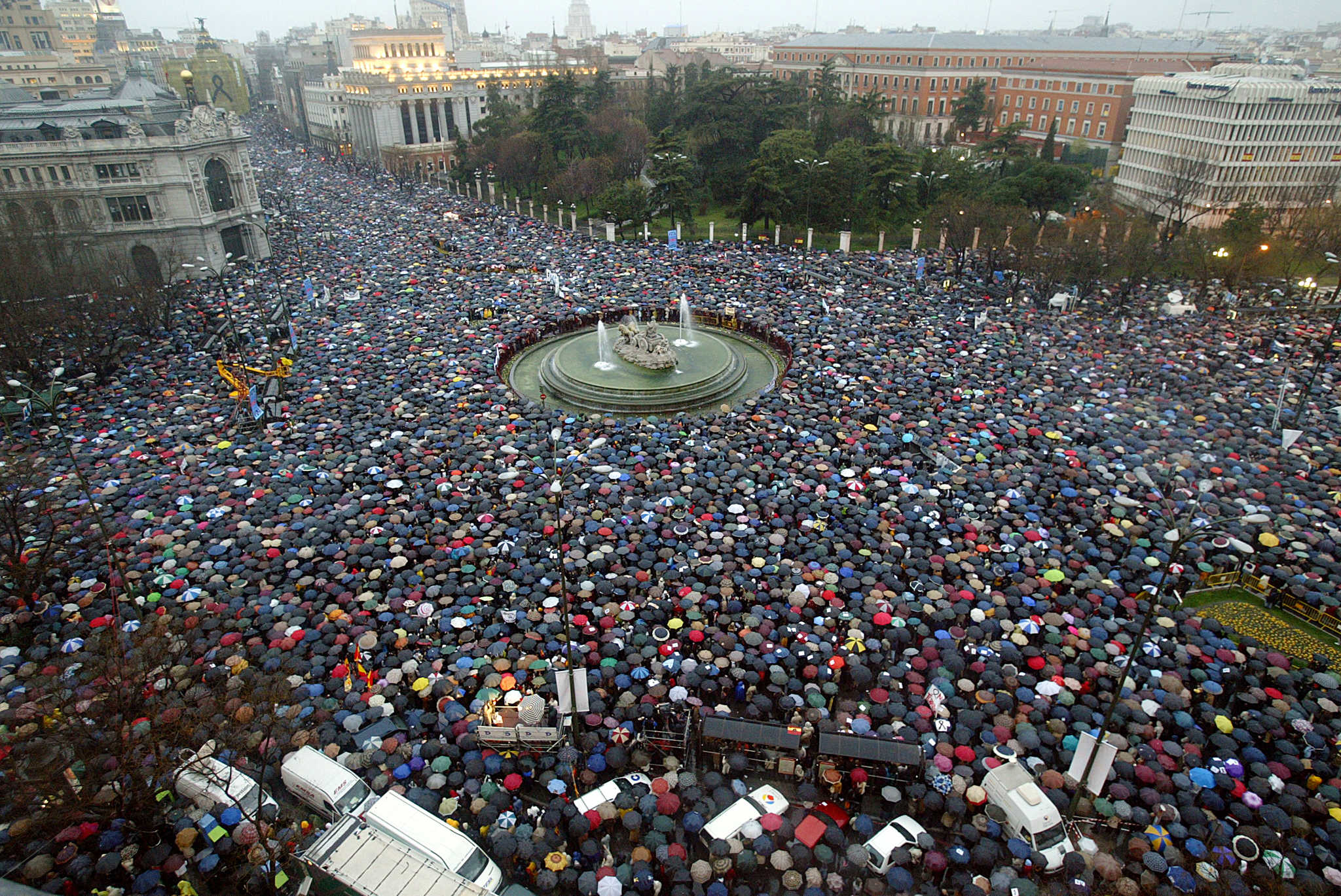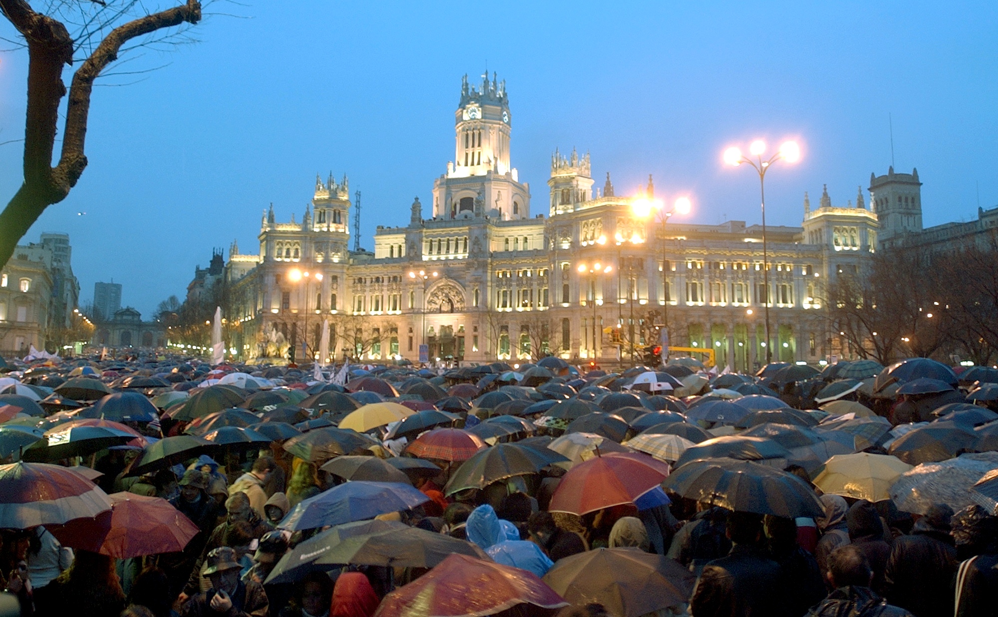 Έξω από τα κεντρικά γραφεία του Λαϊκού Κόμματος (ΡΡ) βρέθηκαν 5.000 διαδηλωτές, άλλοι τόσοι συγκεντρώθηκαν έξω από τον σταθμό της Ατότσα και ξεκίνησαν πορεία προς τα σημεία όπου είχαν γίνει οι εκρήξεις, εκείνη η νύχτα ξημέρωσε με τον ισπανικό λαό στους δρόμους, σε μια μαζική εκδήλωση διαμαρτυρίας απέναντι στους χειρισμούς του Αθνάρ, σε ένα πρωτοφανές κάλεσμα που οργανώθηκε αποκλειστικά μέσα από sms (μηνύματα στα κινητά τηλέφωνα) και που αποτύπωσε την οργή για όσα είχαν συμβεί τα τελευταία 24ωρα.