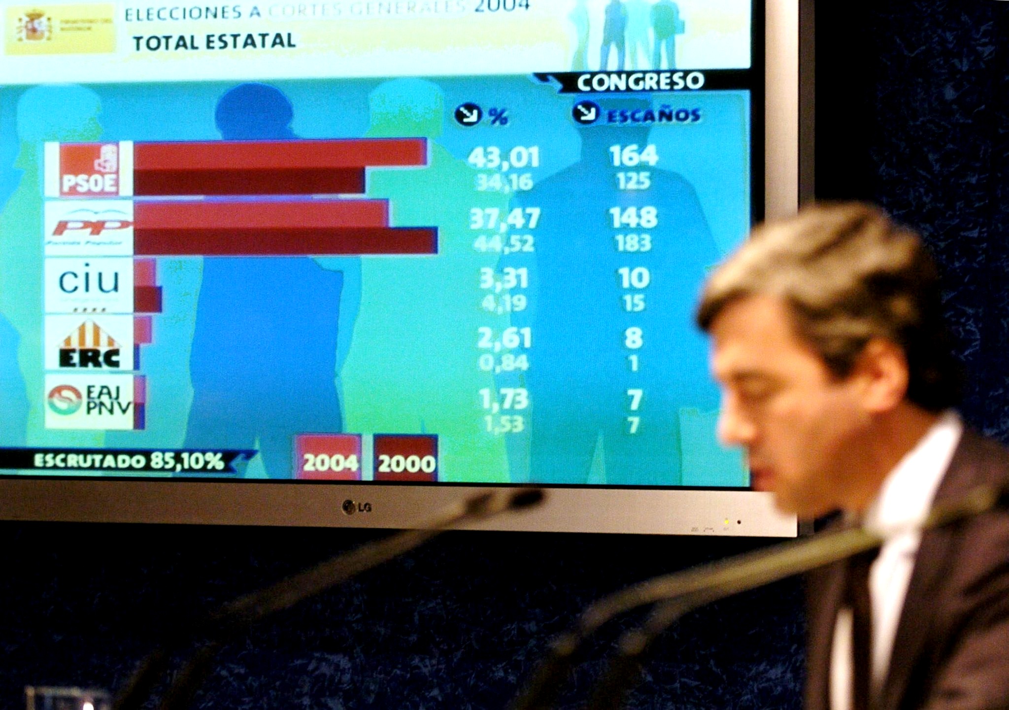 Κυριακή 14 Μαρτίου 2004, εννέα το βράδυ ώρα Ισπανίας. Από τις επτά το απόγευμα είχαν κλείσει οι κάλπες στις ένατες βουλευτικές εκλογές μετά την αποκατάσταση της δημοκρατίας (1976) στη χώρα της Ιβηρικής. Ενώ η καταμέτρηση συνεχιζόταν στα εκλογικά τμήματα, τα πρώτα συγκεντρωτικά αποτελέσματα επιφύλασσαν μια μεγάλη έκπληξη. Παρά το γεγονός ότι όλες ανεξαιρέτως οι δημοσκοπήσεις έδιναν σίγουρη πρωτιά στο – κυβερνών – Λαϊκό Κόμμα (PP, Partido Popular), η νίκη – και μάλιστα με σημαντική διαφορά – έδειχνε να περνάει στους Σοσιαλιστές (PSOE, Partido Socialista Obrero Español).