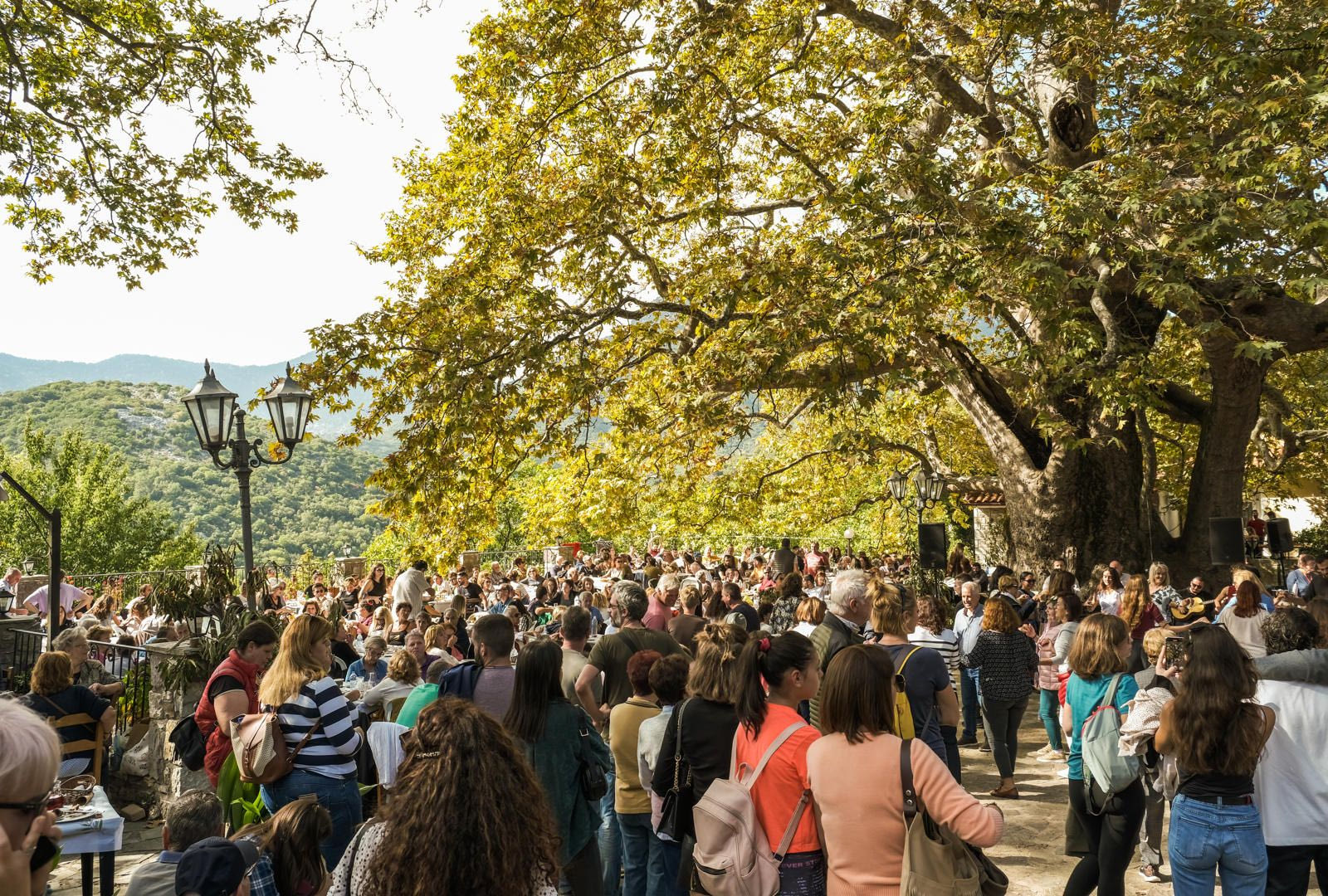 Εκδρομή σ’ ένα χωριό πάνω στον Ταΰγετο όπου το τελευταίο Σαββατοκύριακο Οκτωβρίου γίνεται μια μεγάλη γιορτή.