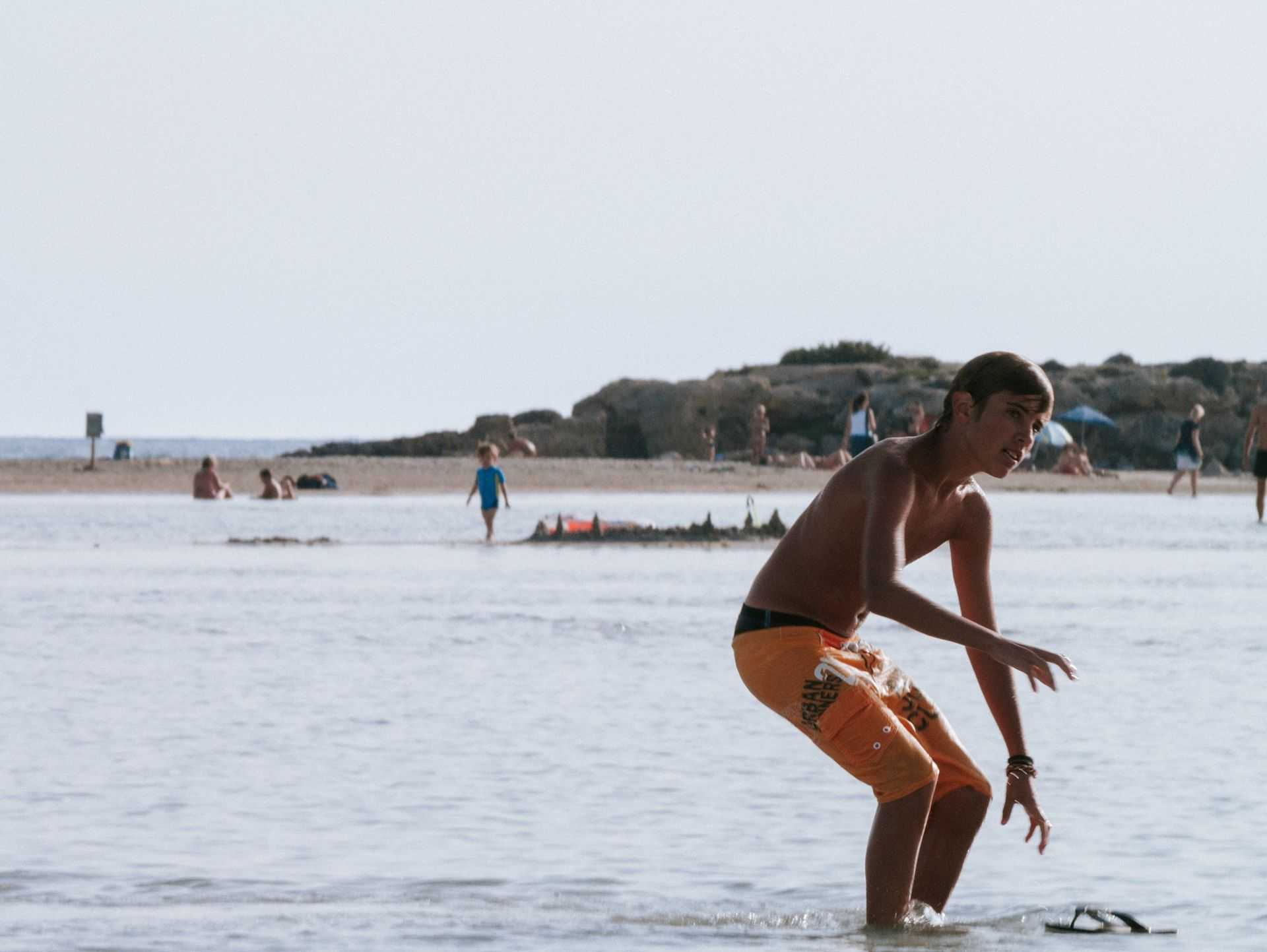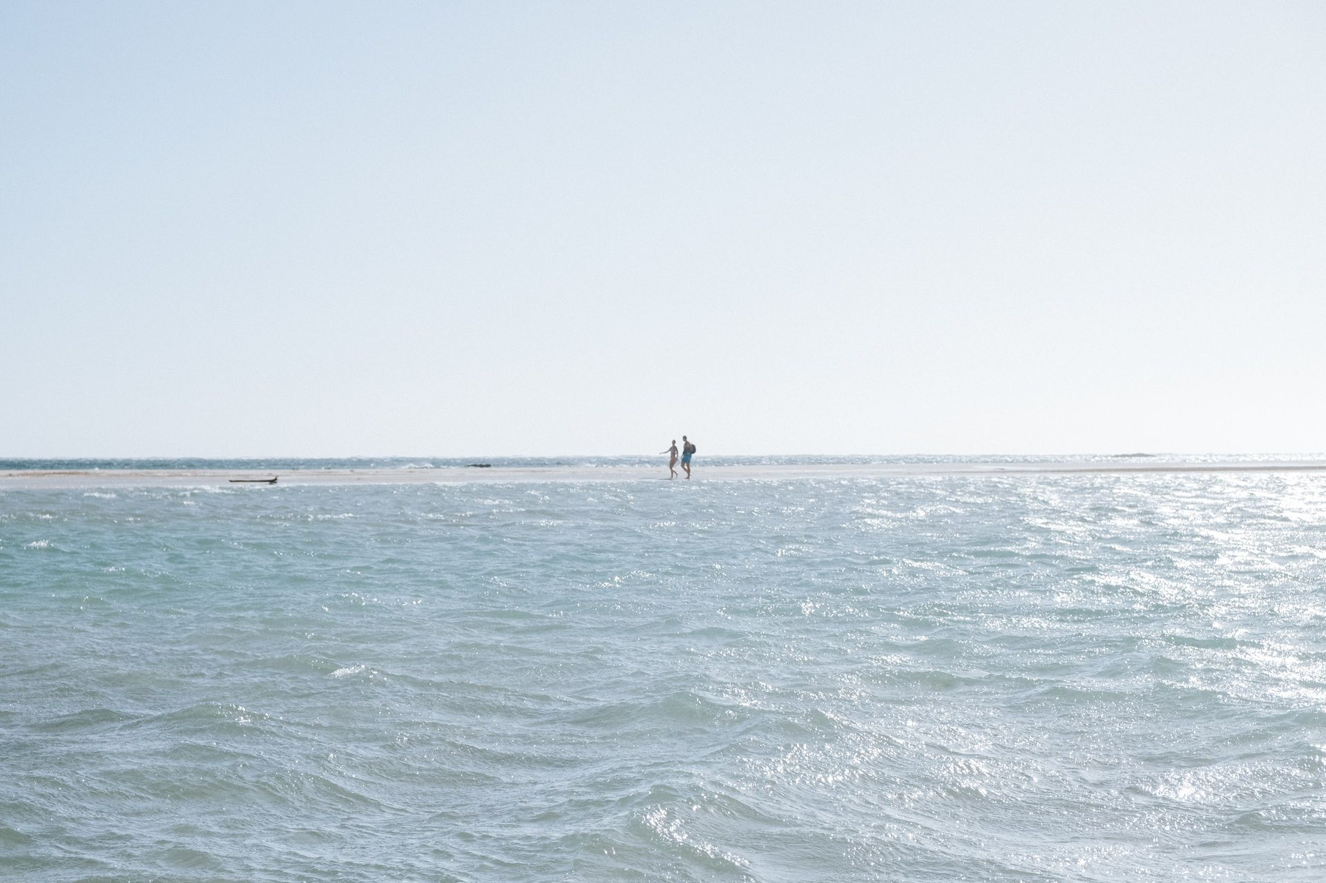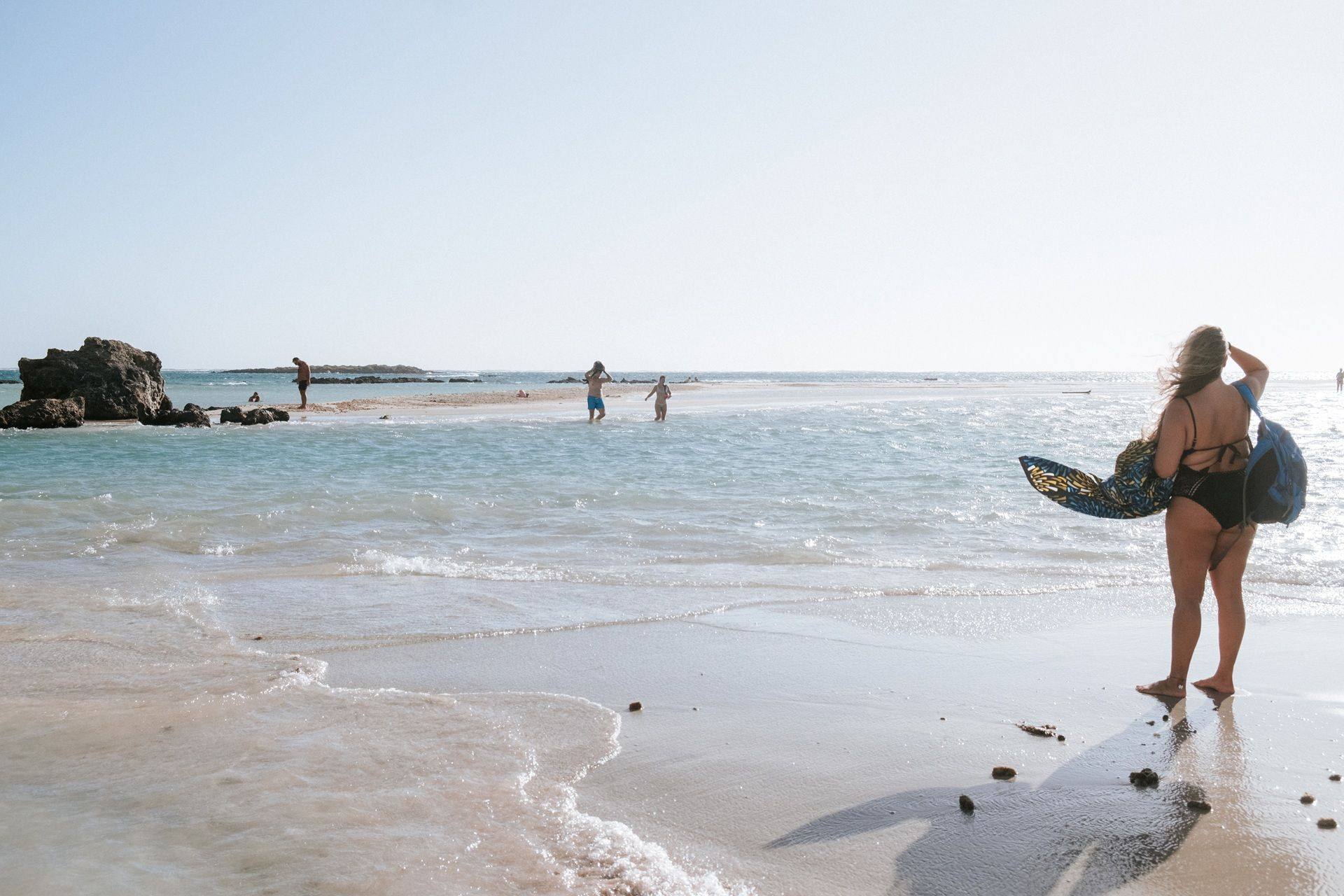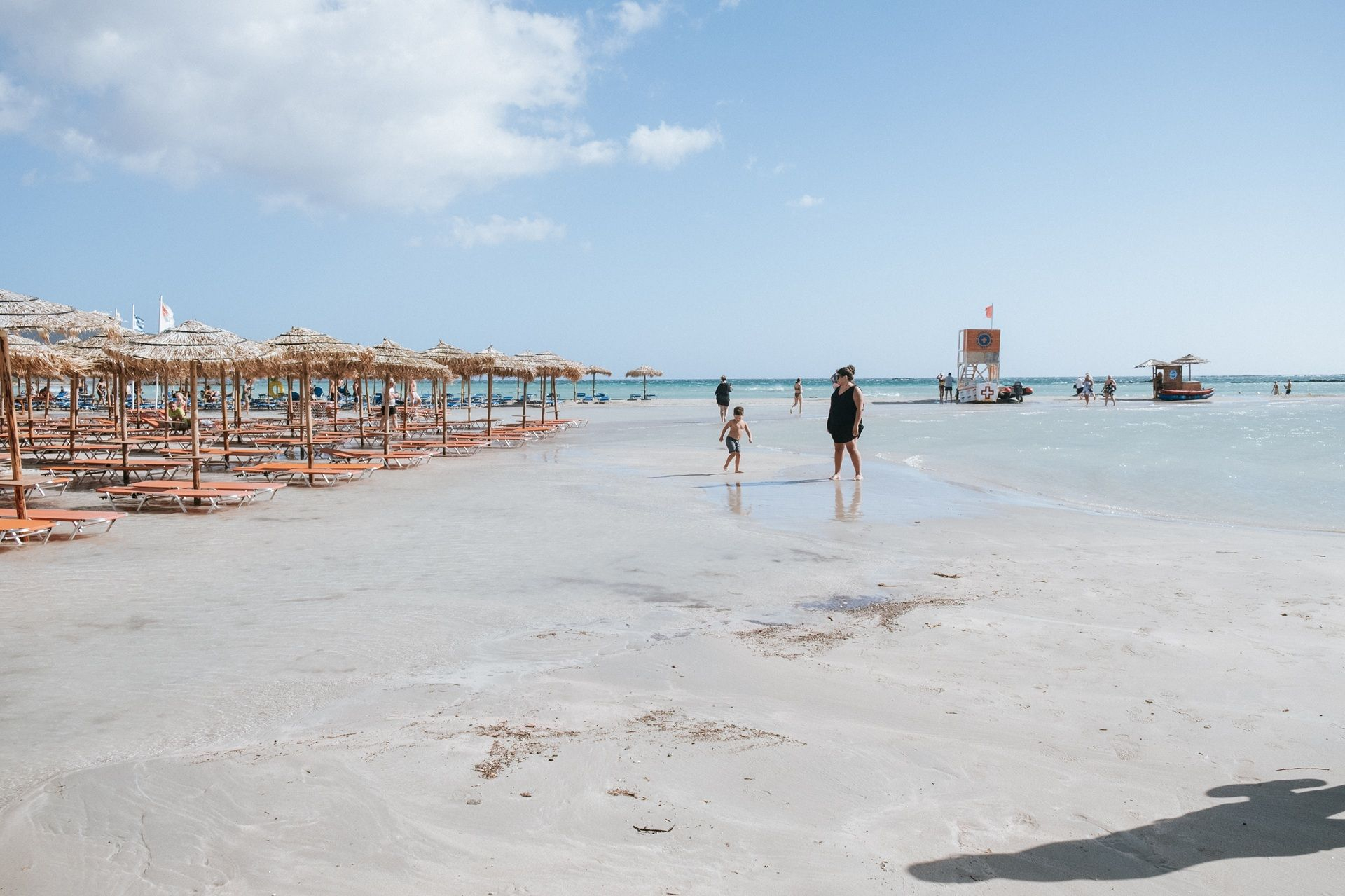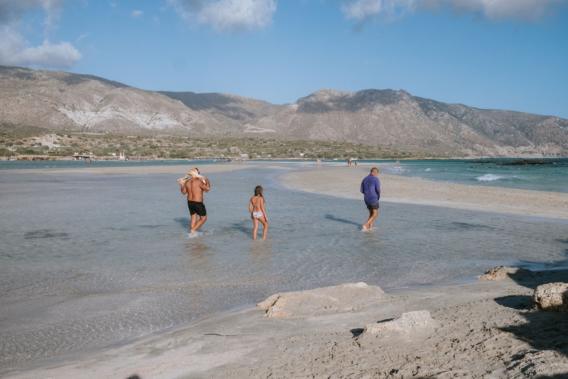 Αμμουδιές με λευκή και ροζ απόχρωση, που οφείλεται σε μικροσκοπικά σπασμένα κοχυλάκια (τρηματοφόρα), πλαισιώνουν τη χερσόνησο, συνθέτοντας ένα εξωτικό τοπίο που παραπέμπει στην Καραϊβική. Το σημείο όπου “σπάει” η χερσόνησος σχηματίζει μια λιμνοθάλασσα με βάθος που δεν ξεπερνά τα 50 εκατοστά, καθιστώντας την ιδανική για παιδιά. Οι επισκέπτες μπορούν με ασφάλεια να τη διασχίσουν πεζοί, μεταφέροντας μαζί τους ακόμη και τον εξοπλισμό τους.