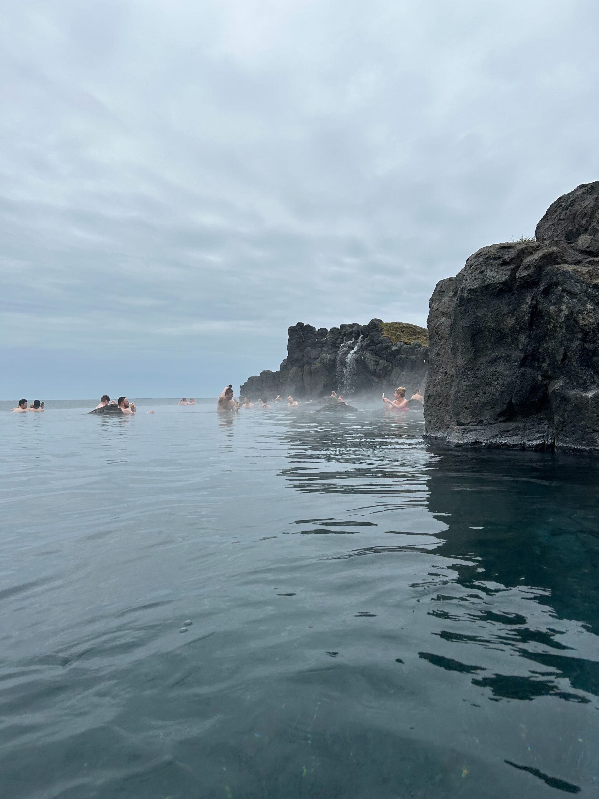 Η μαγική αυτή λιμνοθάλασσα, με θέα στον απέραντο Βόρειο Ατλαντικό Ωκεανό. Λίγα λεπτά από το ξενοδοχείο, μέσα στην πόλη του Ρέκιαβικ, η όαση του ιαματικού SPA, Blue Lagoon με περίμενε. Είχα αγοράσει το VIP εισιτήριο για το Sky Lagoon, που εκτός από τη κολύμπι στα ζεστά και δώρο ένα ποτό, περιελάμβανε και ένα ritual 7 σταδίων. Δεν κατάλαβα τι ακριβώς θα ακολουθούσε, όμως μπήκα αμέσως στο κλίμα. Στην υποδοχή φόρεσα 2 βραχιολάκια, που θα διευκόλυναν όλες μου τις κινήσεις και «προσθαλασσώθηκα» στον παράδεισο. Η καυτή κυριολεκτικά, γεωθερμική λιμνοθάλασσα, απλώνονταν μπροστά μου, καθώς περνούσα τη σπηλαιώδη είσοδο .