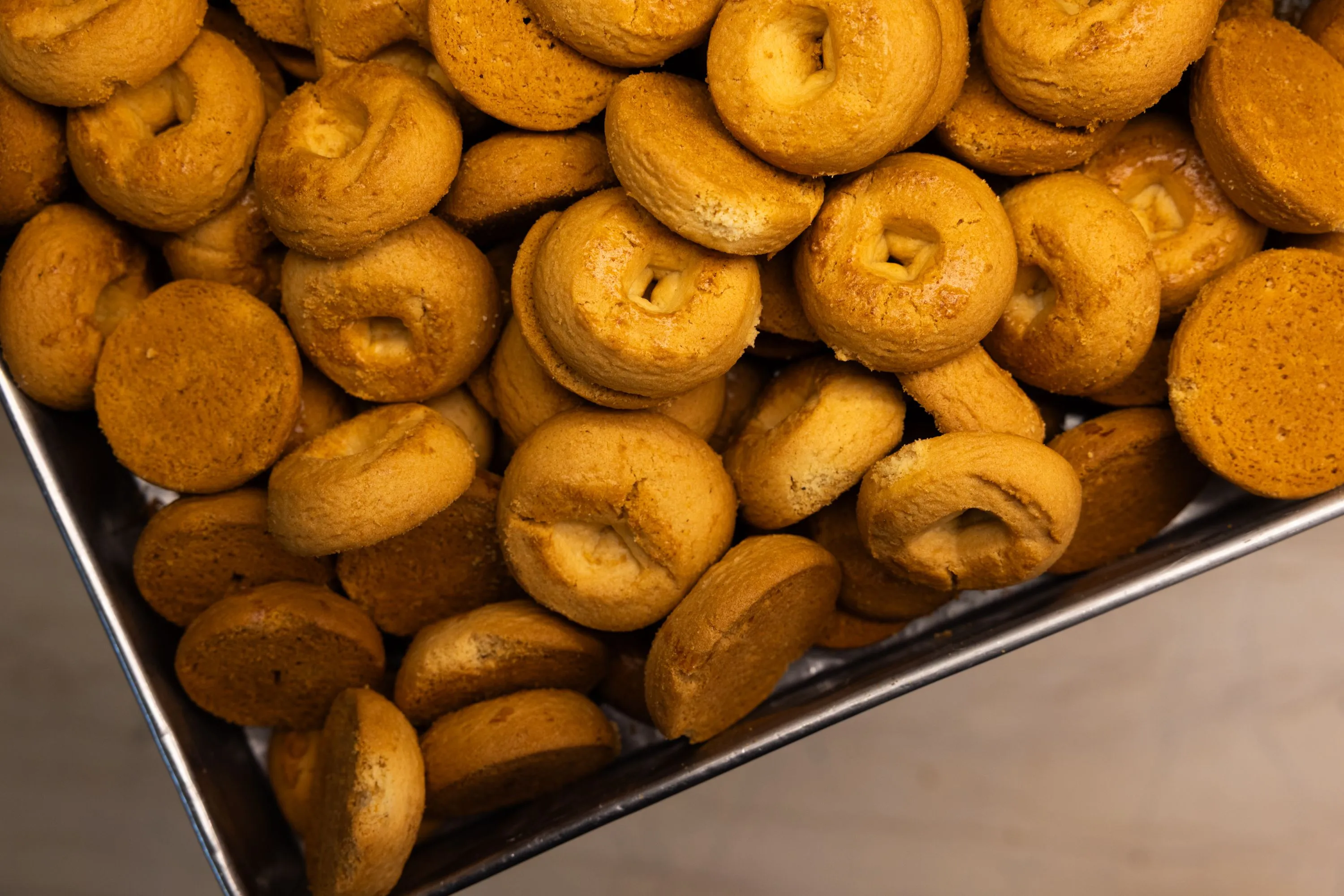 «Παρόλο που αγοράσαμε νέο μηχάνημα τελευταίας τεχνολογίας και χρησιμοποιήσαμε το ίδιο ζυμάρι, κάτι συμβαίνει και οι πελάτες μάς λένε “έχετε αλλάξει κάτι στο μπισκότο;”. Διατηρούμε λοιπόν αυτή την προπολεμική μηχανή με τα χίλια ζόρια, μόνο και μόνο για να μπορούμε να βγάζουμε αυτό το γλυκό». Το ίδιο μπισκότο κυκλοφορεί και σε σκέτα βουτήματα, τα οποία επίσης λατρεύω.