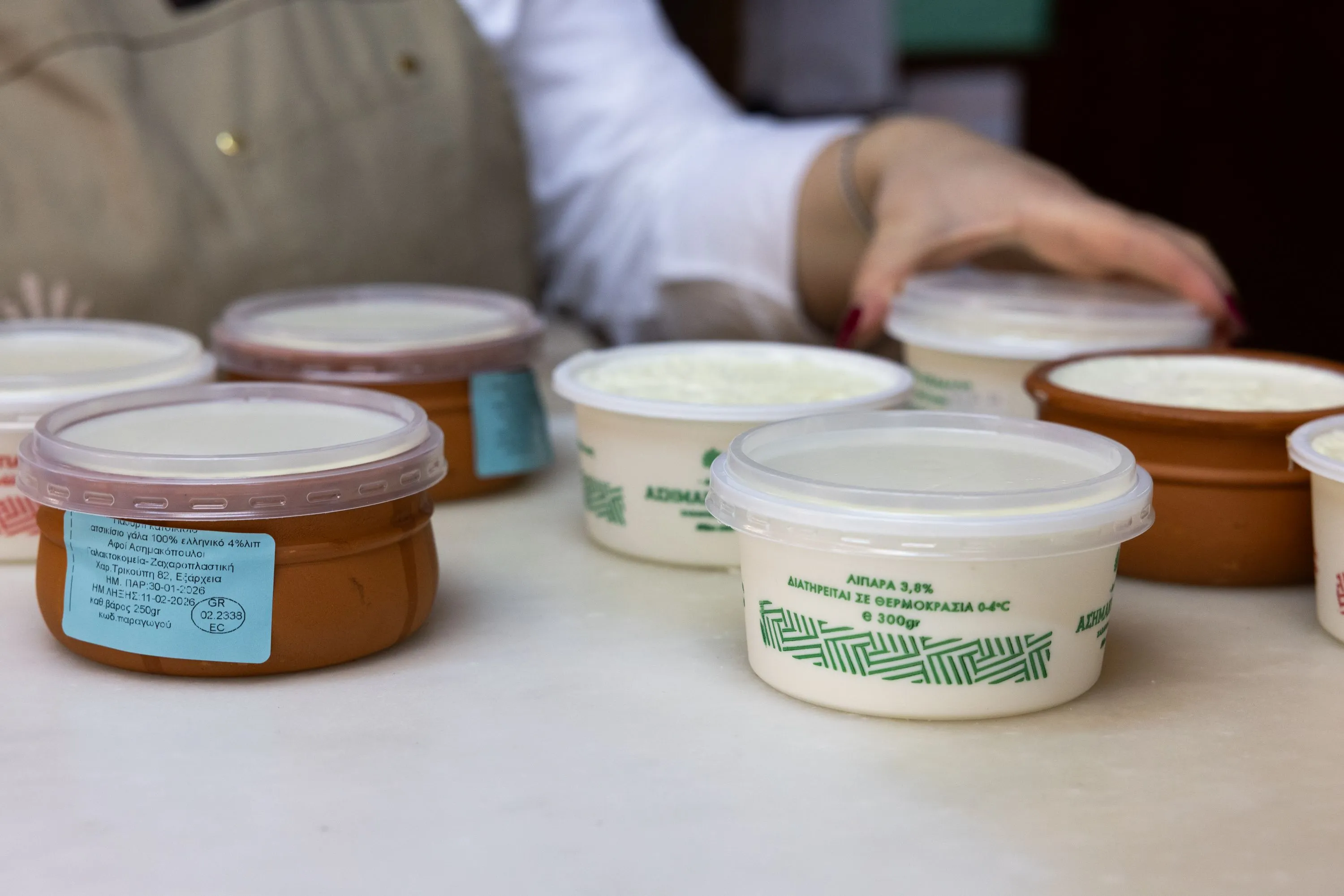 Το ιστορικό ζαχαροπλαστείο του κέντρου εξακολουθεί να προμηθεύεται φρέσκο πρόβειο και αγελαδινό γάλα απευθείας από κτηνοτρόφους στα Σπάτα και το Μαρκόπουλο, το οποίο παστεριώνεται στα Εξάρχεια, ενώ δουλεύει με φρέσκο, ντόπιο βούτυρο. Περνώντας την είσοδο της Χαριλάου Τρικούπη, οι προθήκες και οι ξύλινες επενδύσεις που καδράρουν τις βιτρίνες υπογραμμίζουν την ιστορία του – μια ανακαίνιση που ήταν να γίνει ανακόπηκε από την οικονομική κρίση, «ευτυχώς», όπως θα μου πει η σημερινή, τρίτη γενιά.